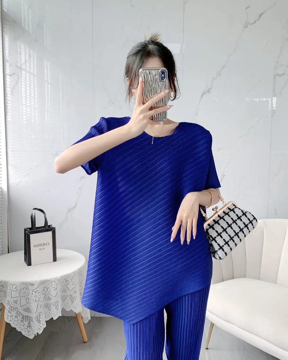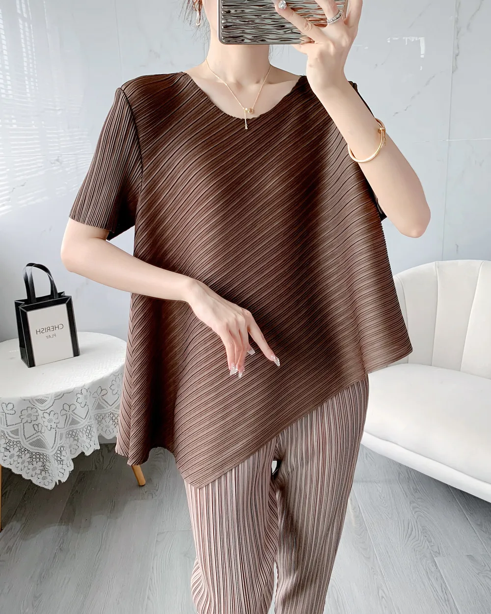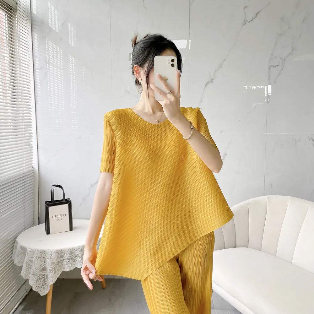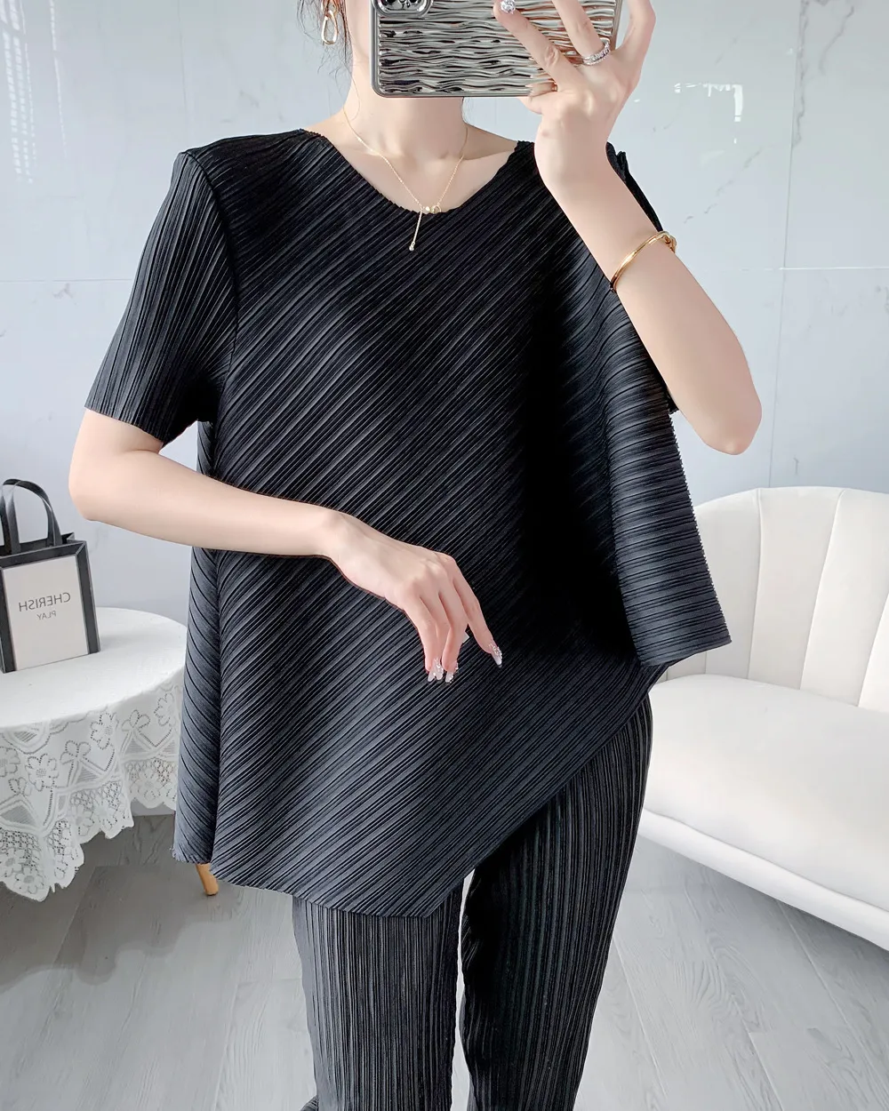 衣都精品- 2023新款時尚歐美休閒氣質不規則壓褶上衣