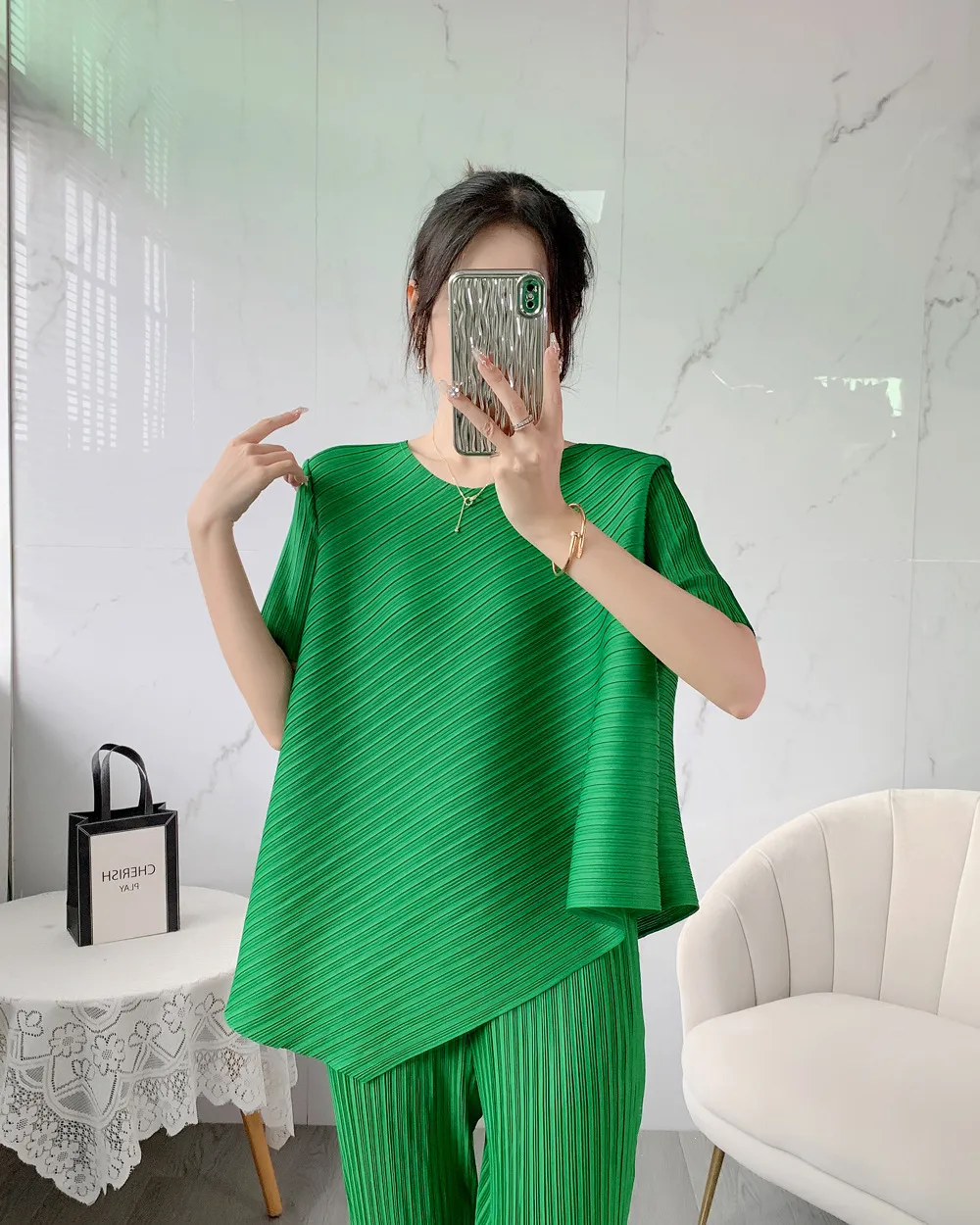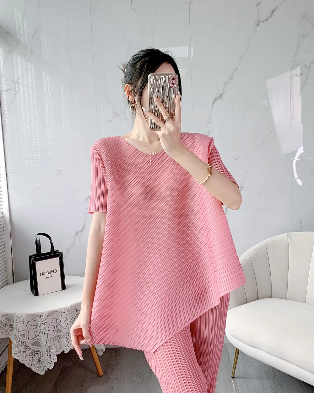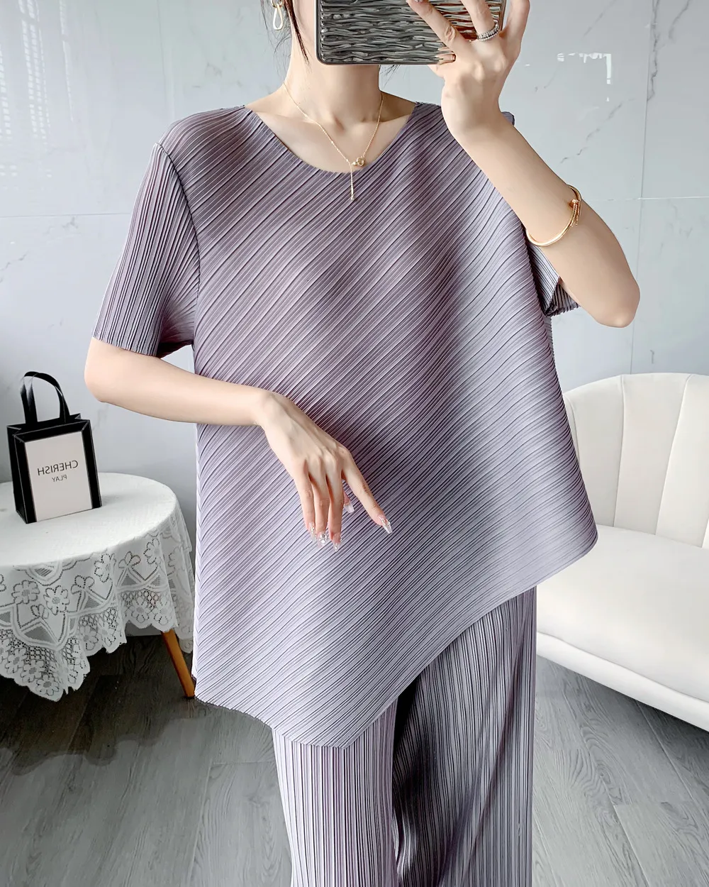 衣都精品- 2023新款時尚歐美休閒氣質不規則壓褶上衣