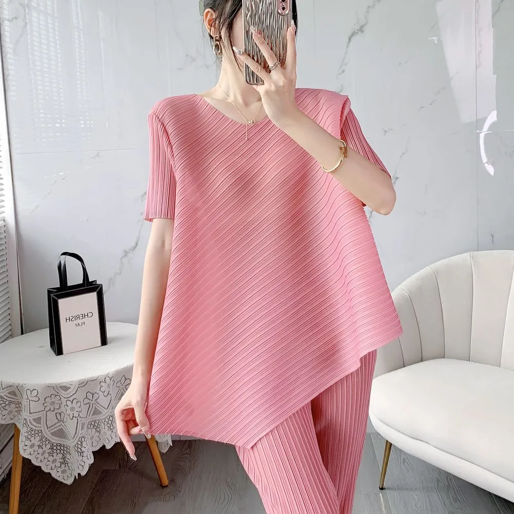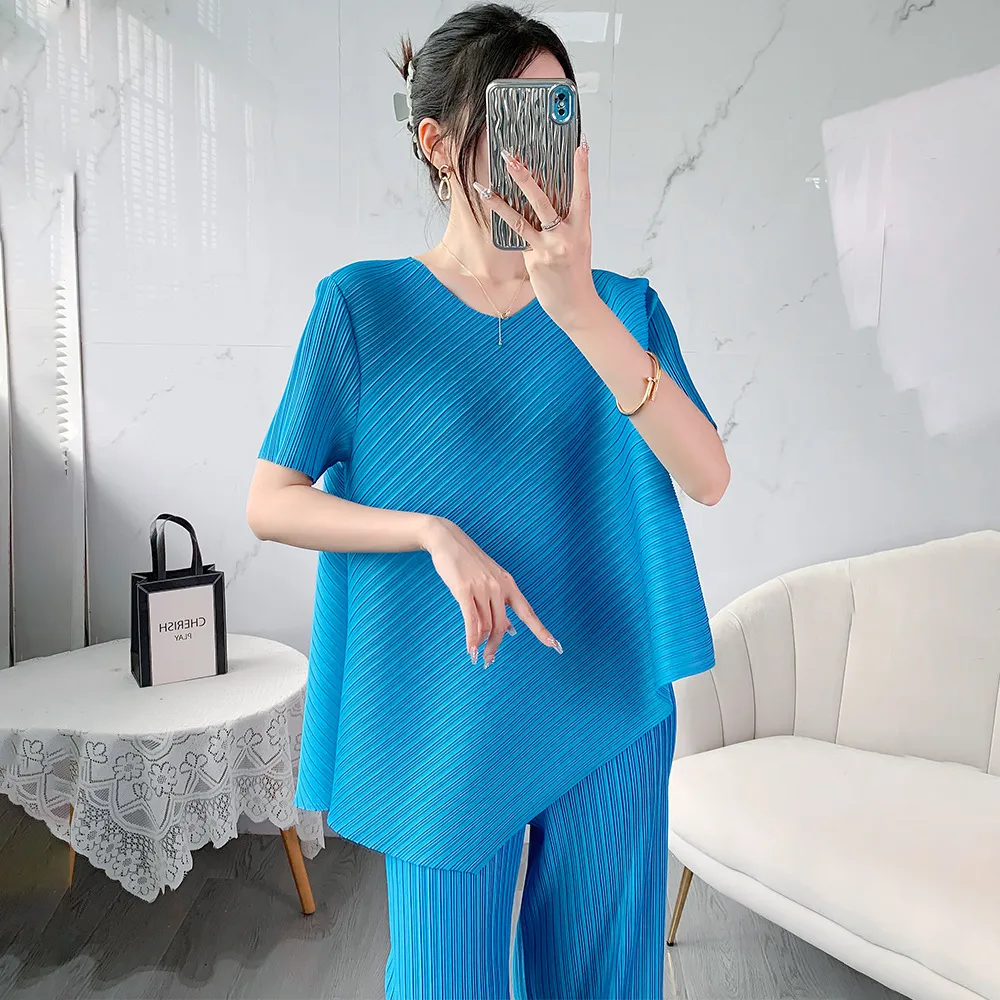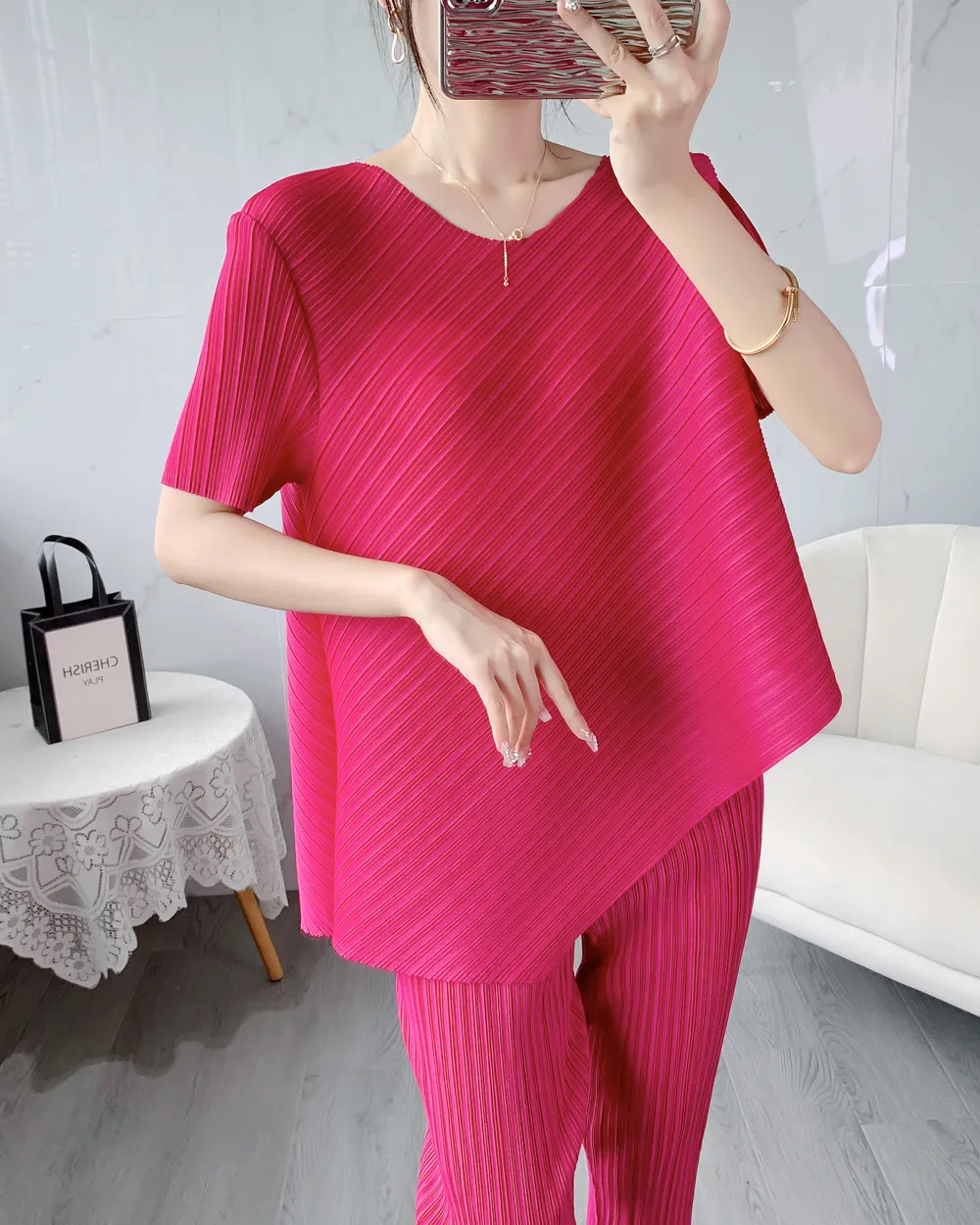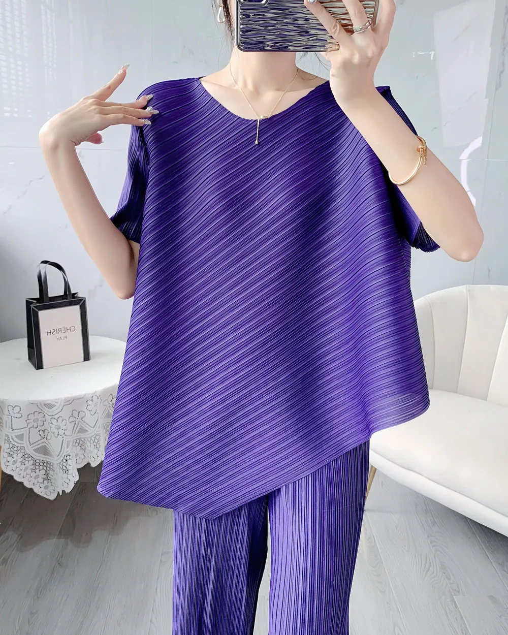衣都精品- 2023新款時尚歐美休閒氣質不規則壓褶上衣