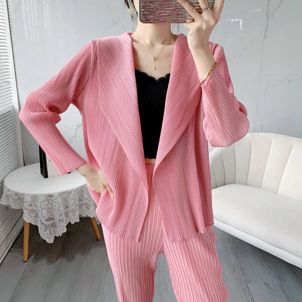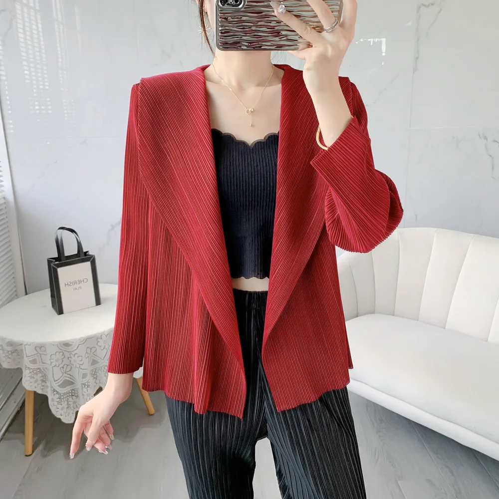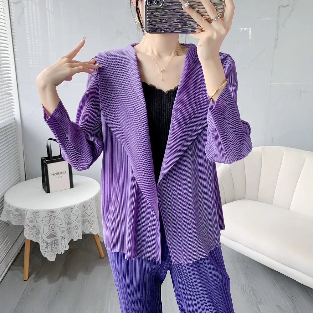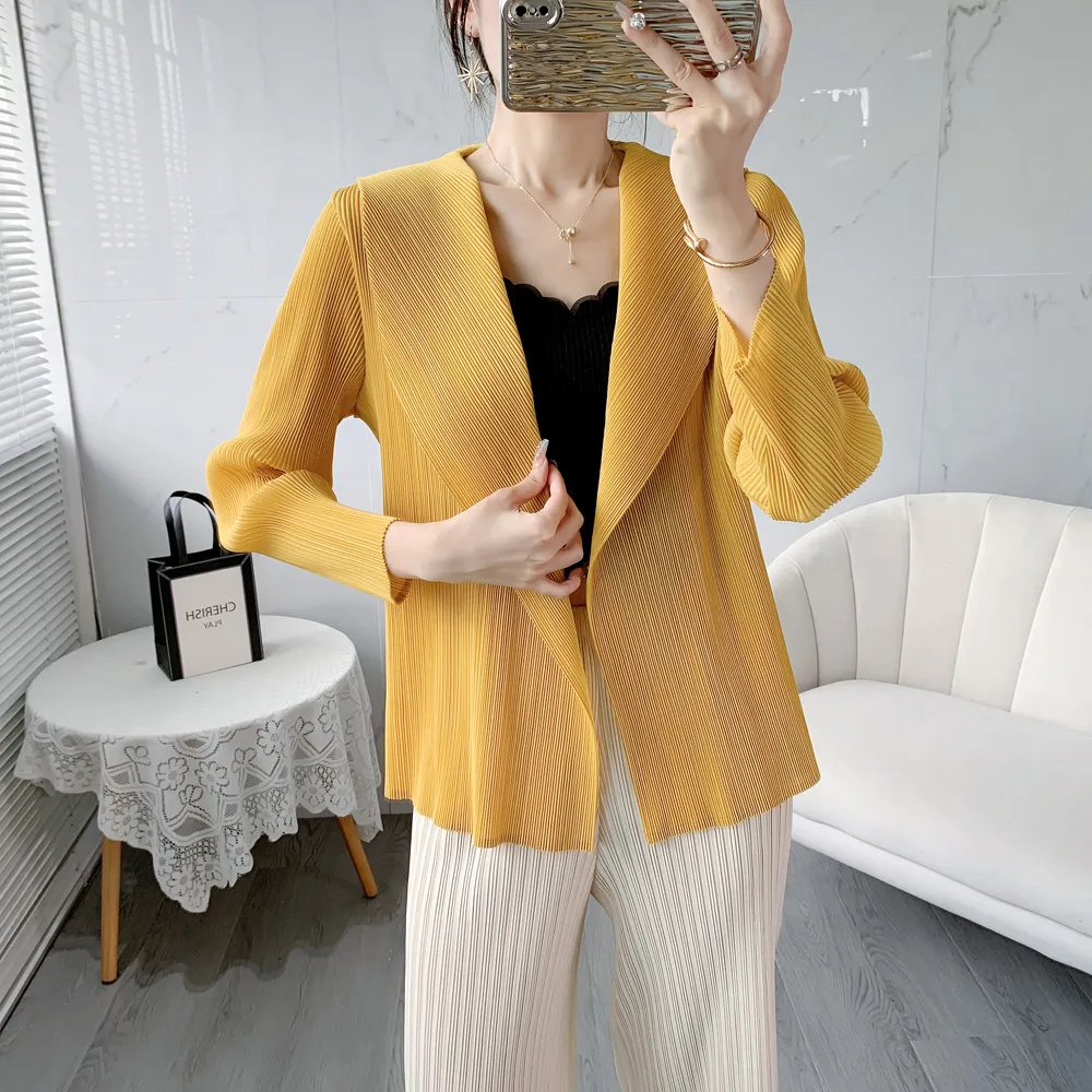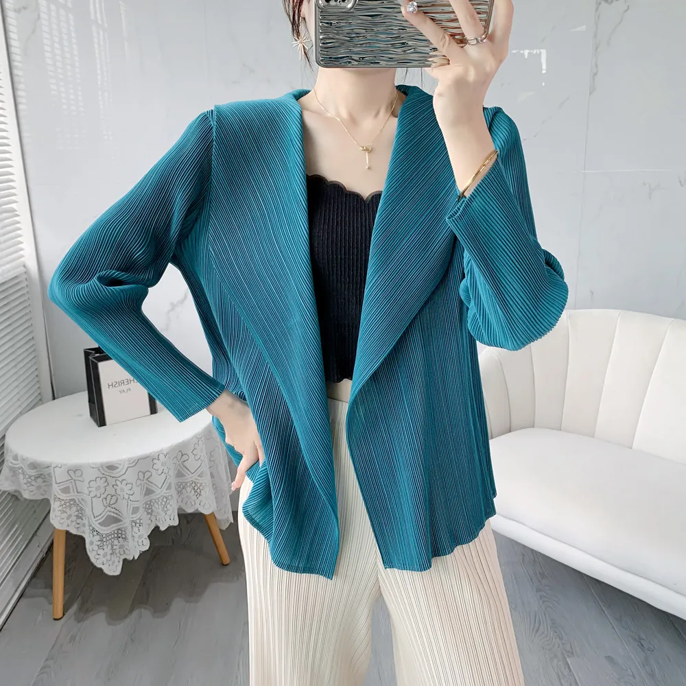 衣都精品- 2023新款時尚開衫純色長袖無扣褶皺外套
