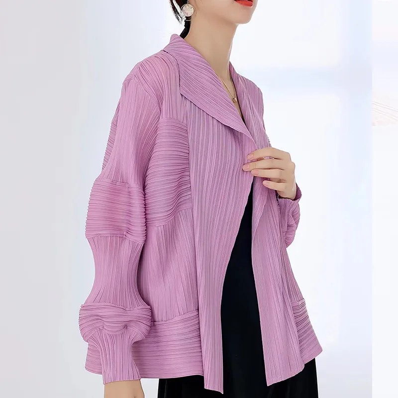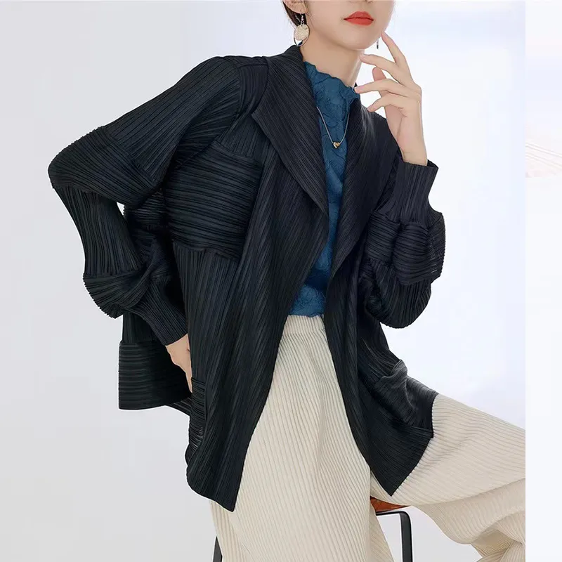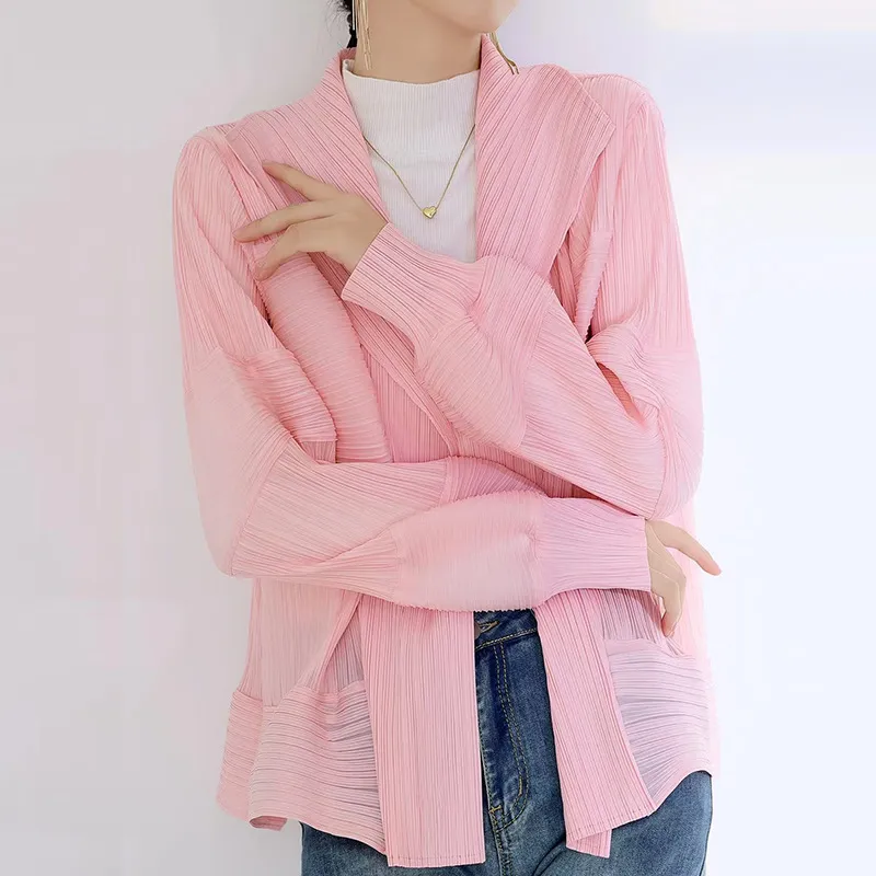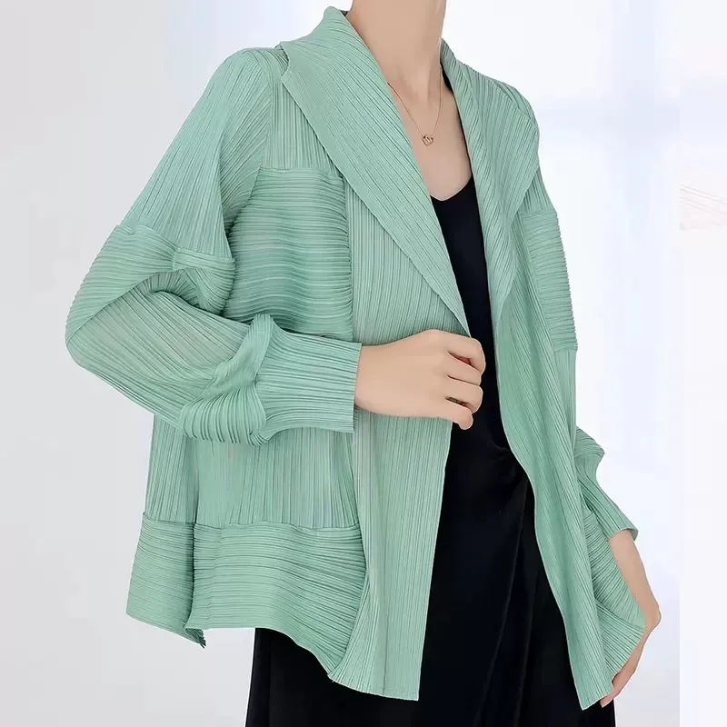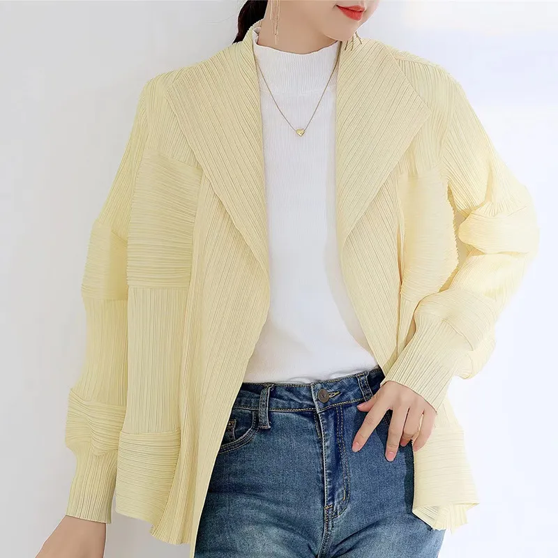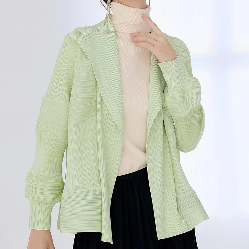 衣都精品- 2023新款時尚開衫純色長袖無扣褶皺外套
