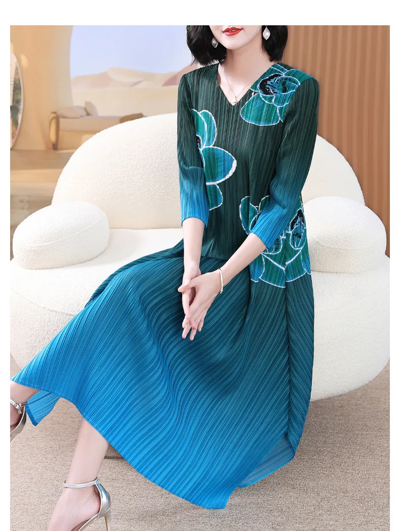 衣都精品- 2023新款時尚波點氣質褶皺印花連衣裙