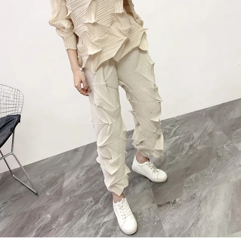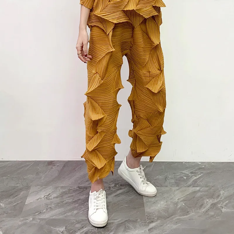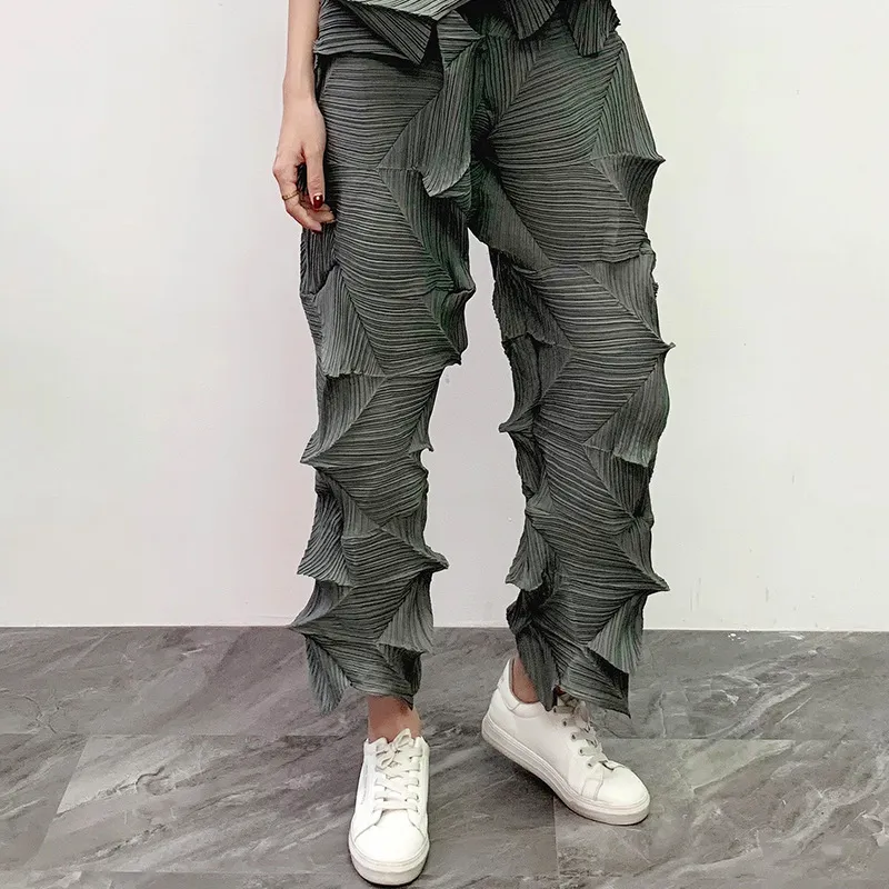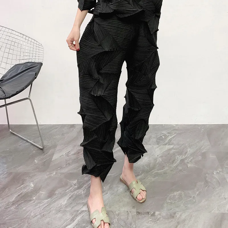 衣都精品- 2023新款時尚寬鬆大碼亂褶闊腿褲