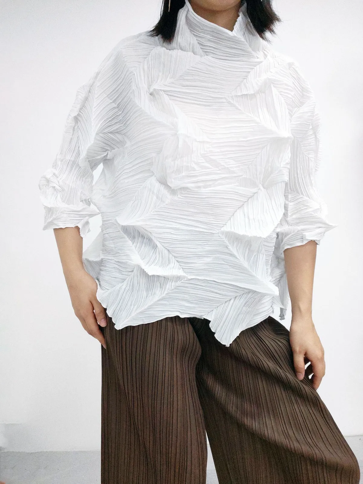 衣都精品- 2023新款時尚簡約純色百搭休閒褶皺上衣