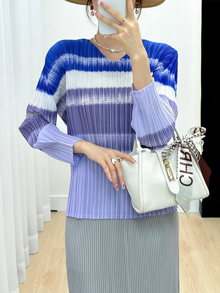 衣都精品- 2023新款時尚氣質不規則純色鑽石褶上衣