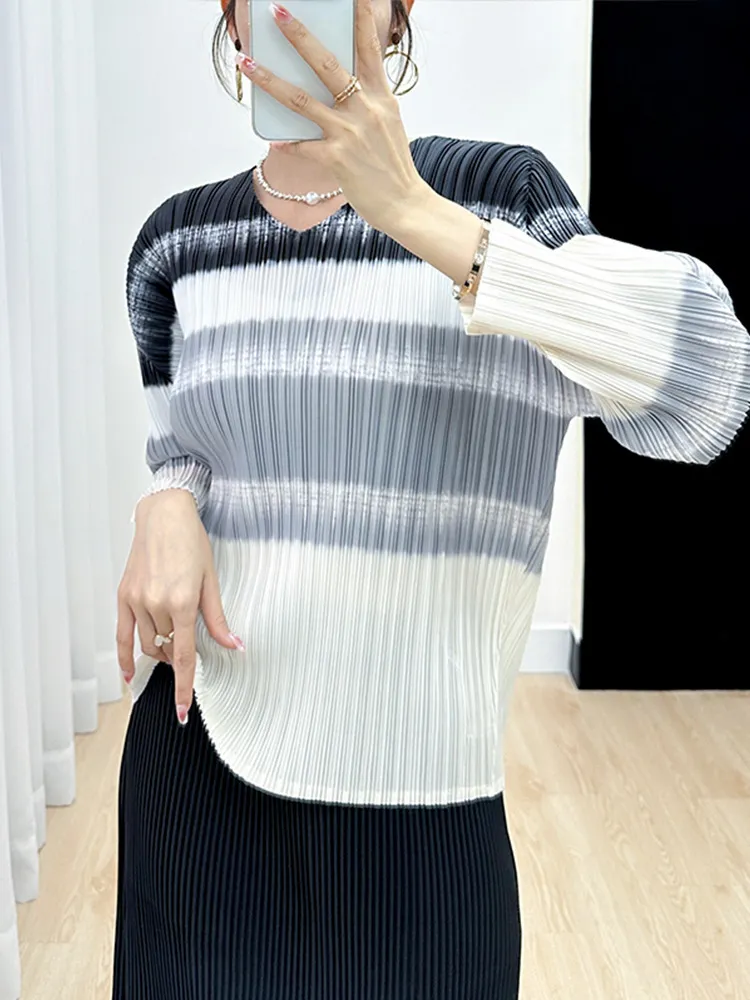 衣都精品- 2023新款氣質簡約燈籠袖超彈褶皺上衣