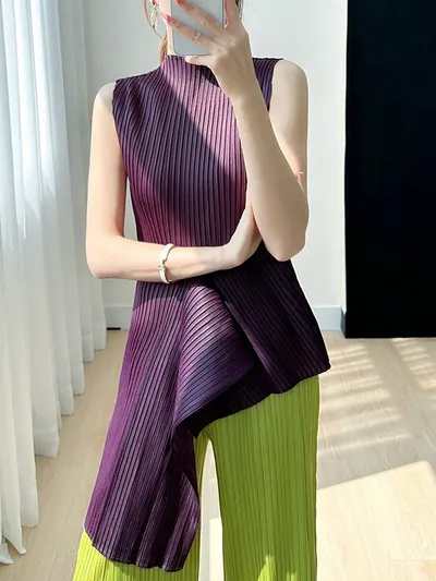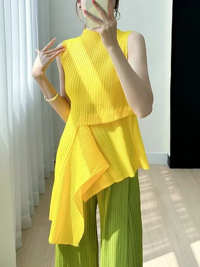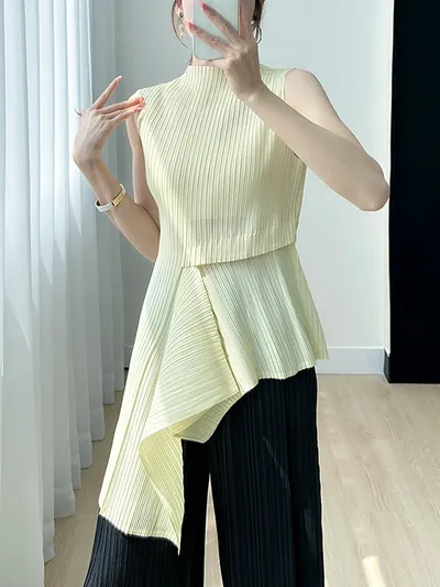 衣都精品- 2023新款休閒收腰顯瘦不規則褶皺上衣