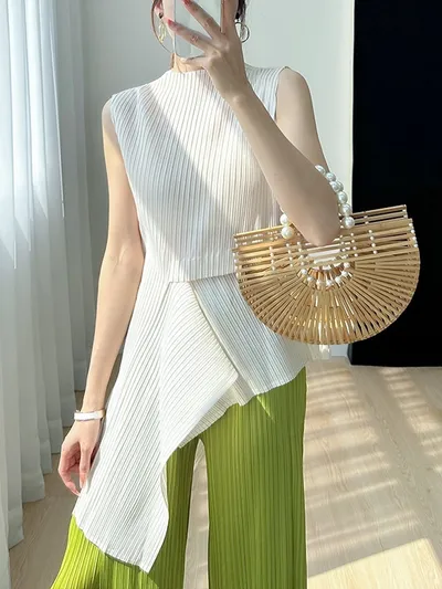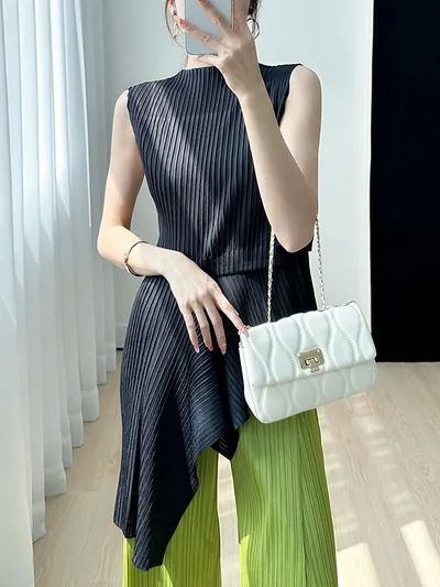 衣都精品- 2023新款時尚氣質不規則純色鑽石褶上衣