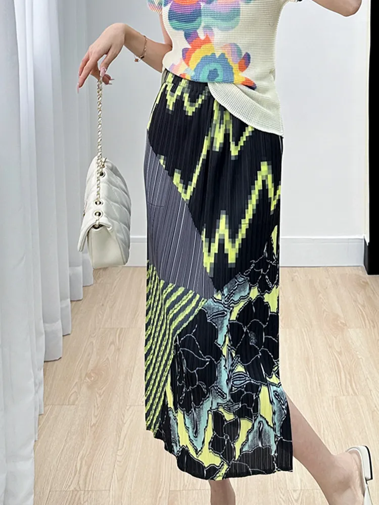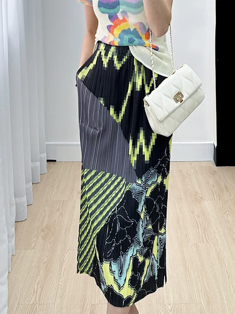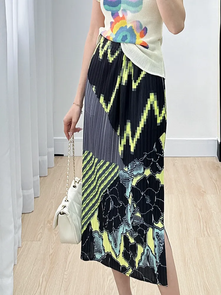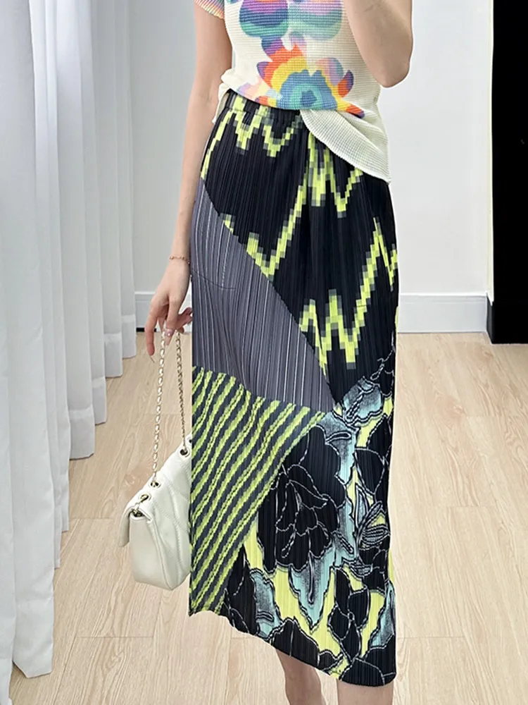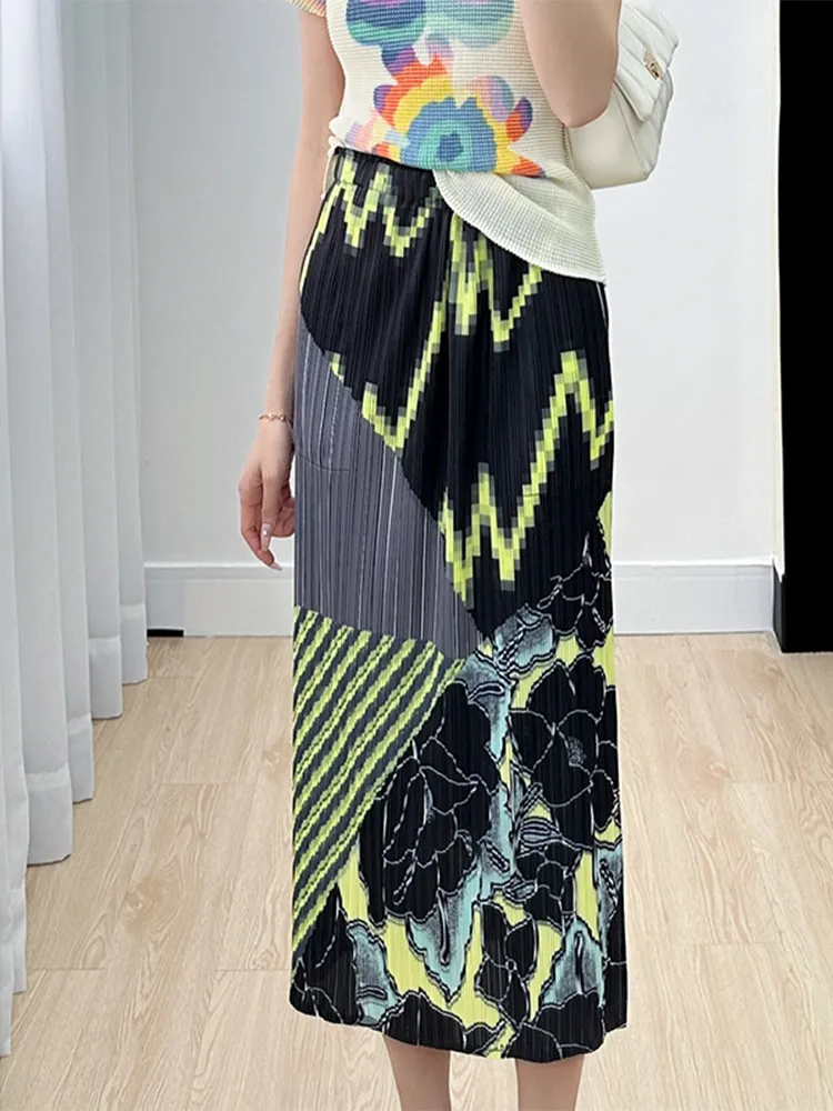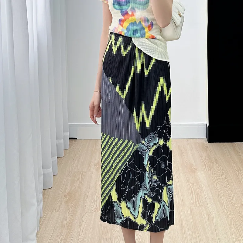 衣都精品- 2023新款印花顯瘦包臀高腰百褶半身裙