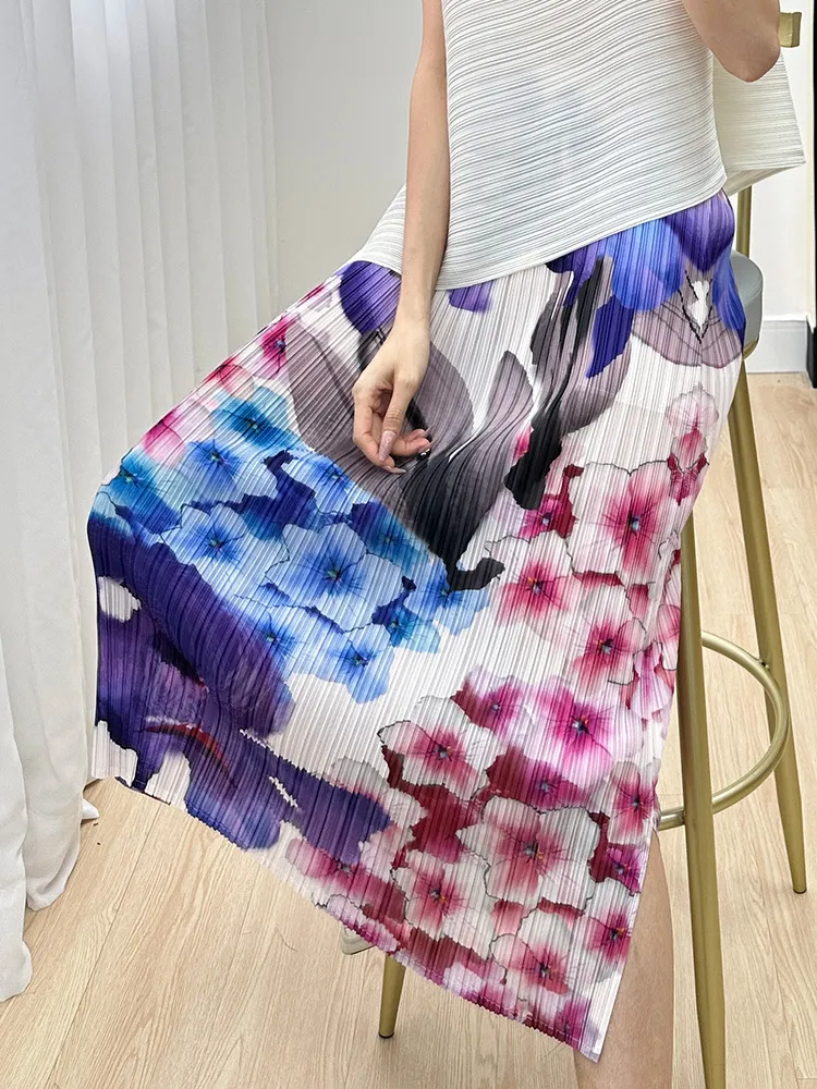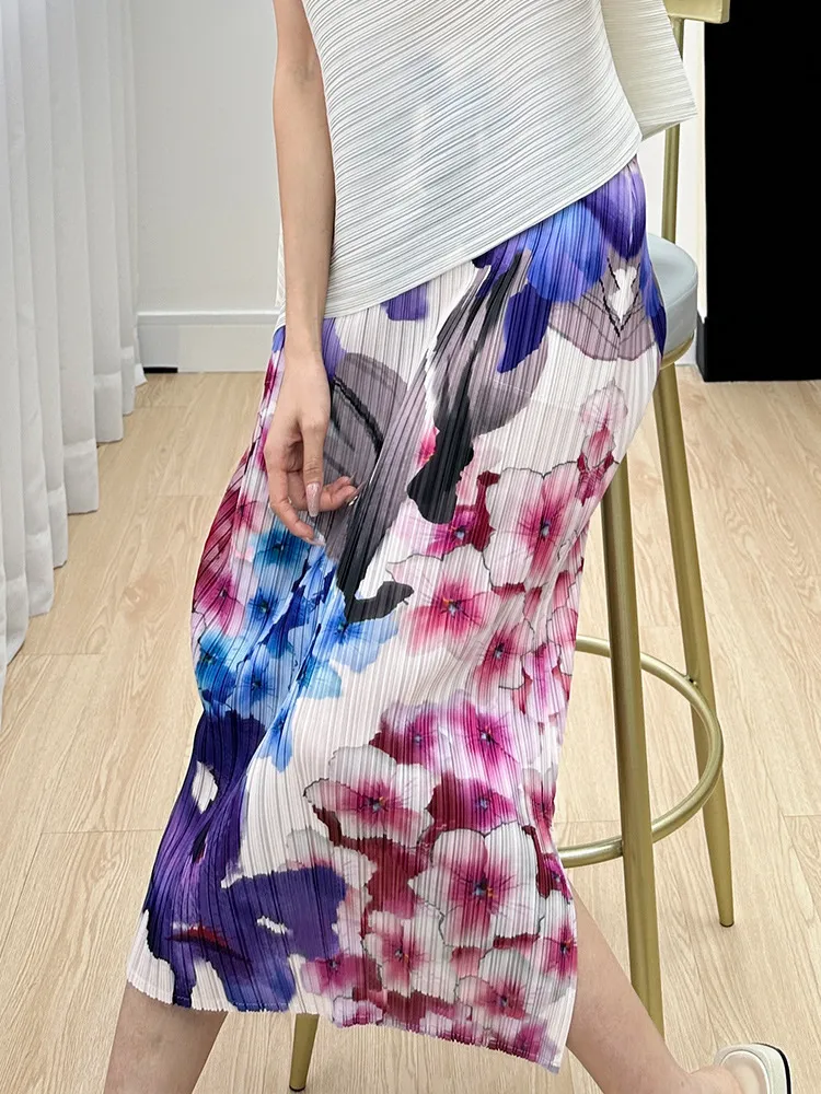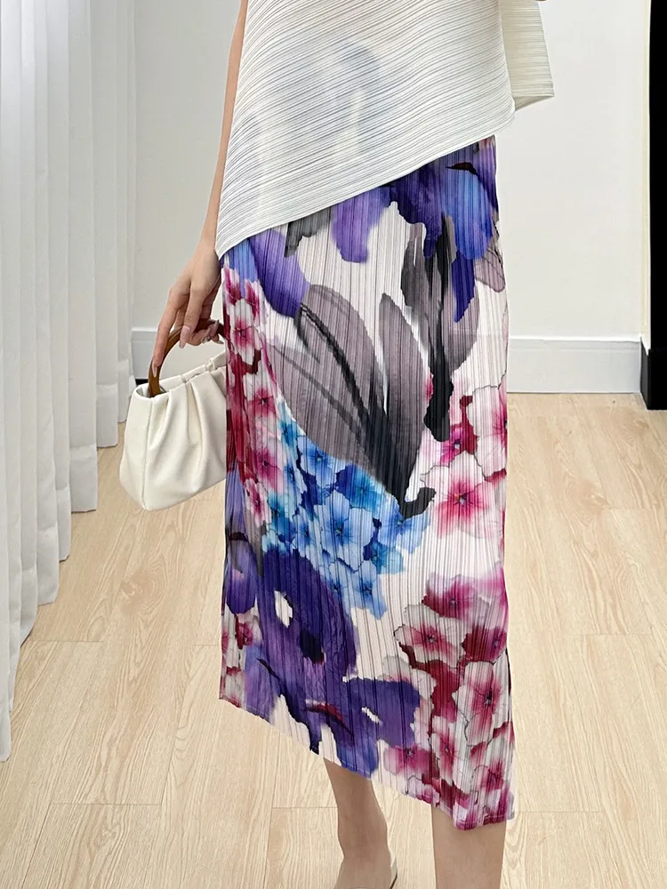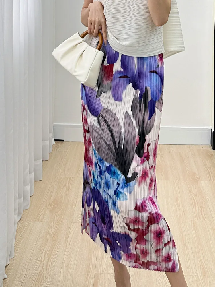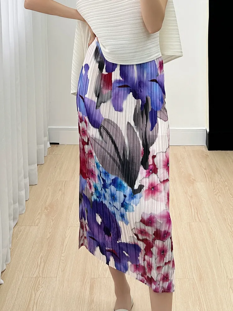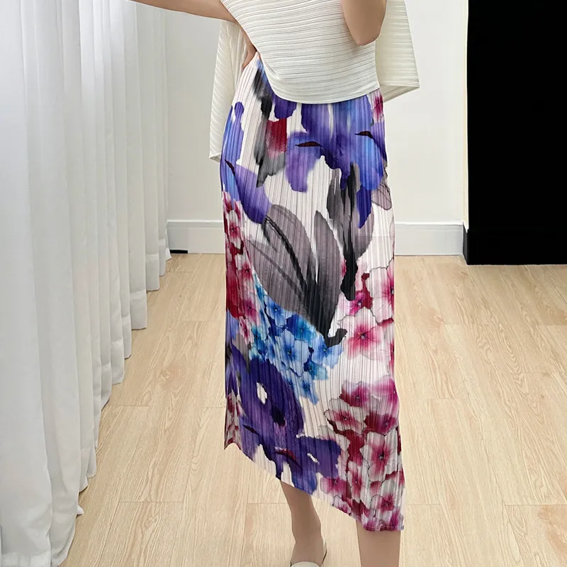 衣都精品- 2023新款印花顯瘦包臀高腰百褶半身裙