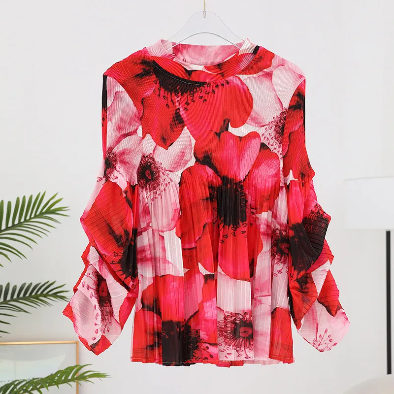 衣都精品- 2023新款印花寬鬆遮肉顯瘦褶皺上衣