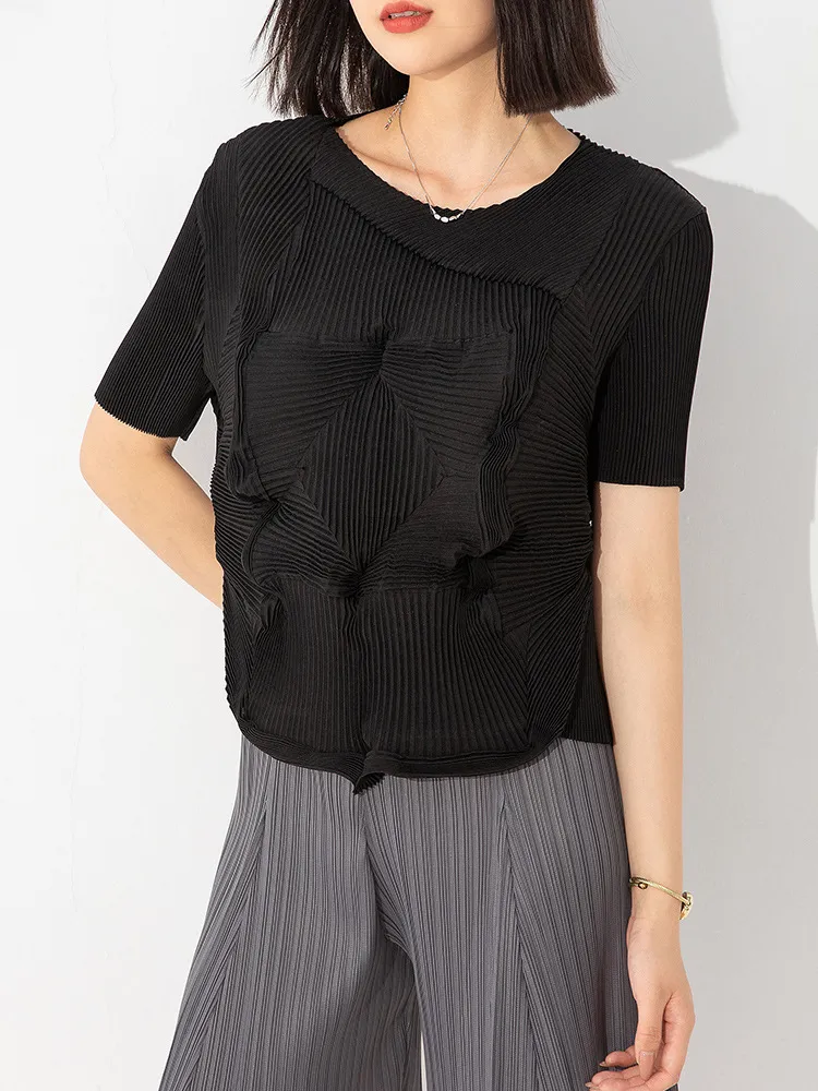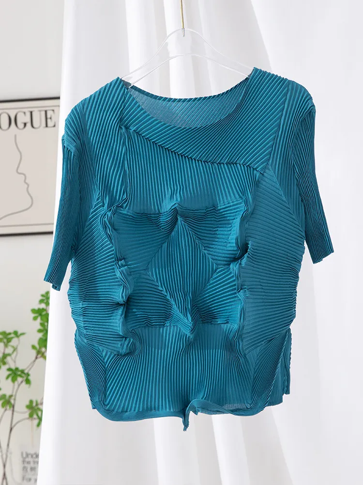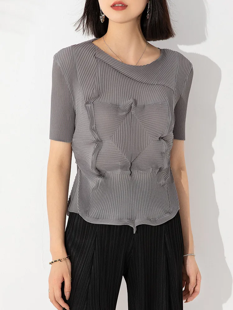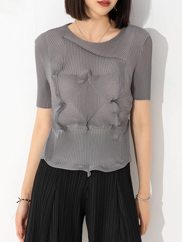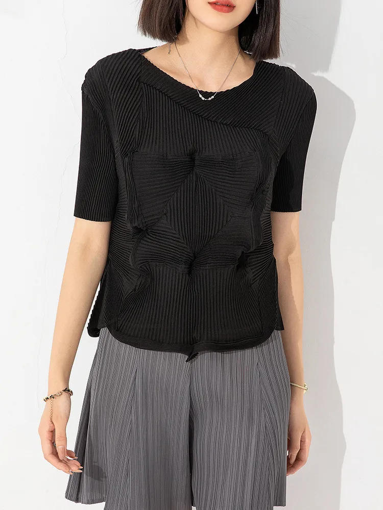 衣都精品- 2023新款舒適不規則休閒蝙蝠袖褶皺上衣