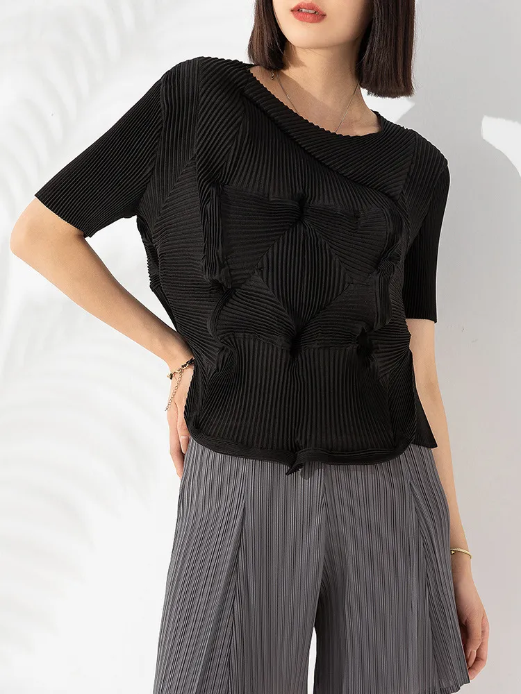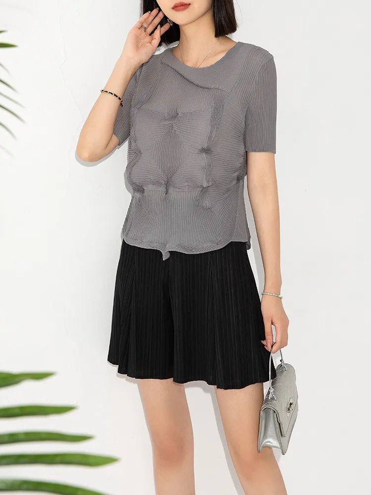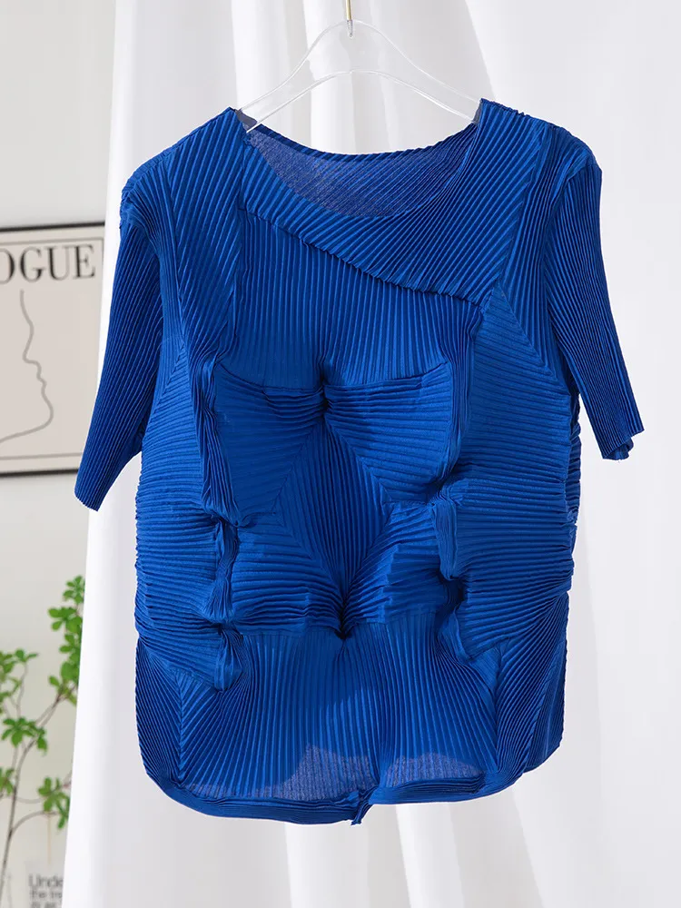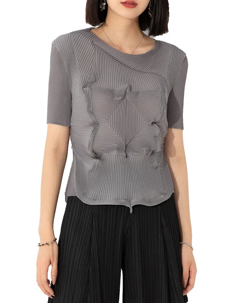 衣都精品- 2023新款圓領套頭手工亂褶寬鬆上衣