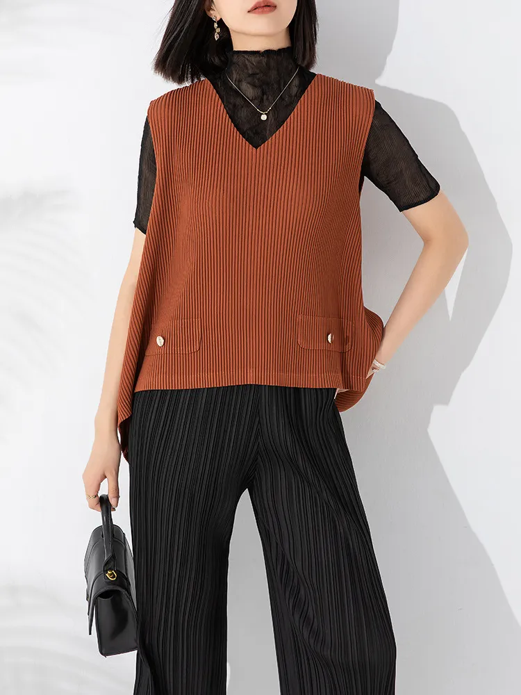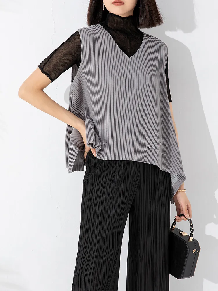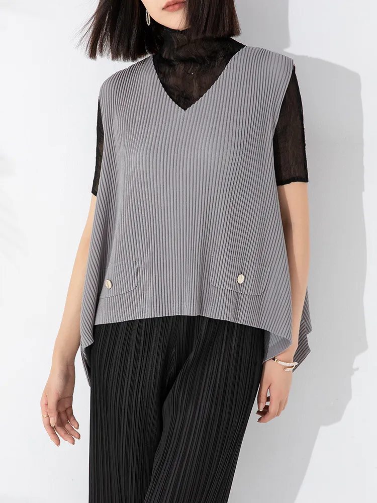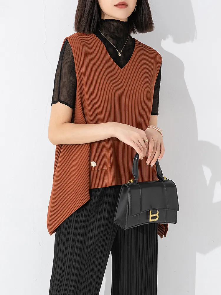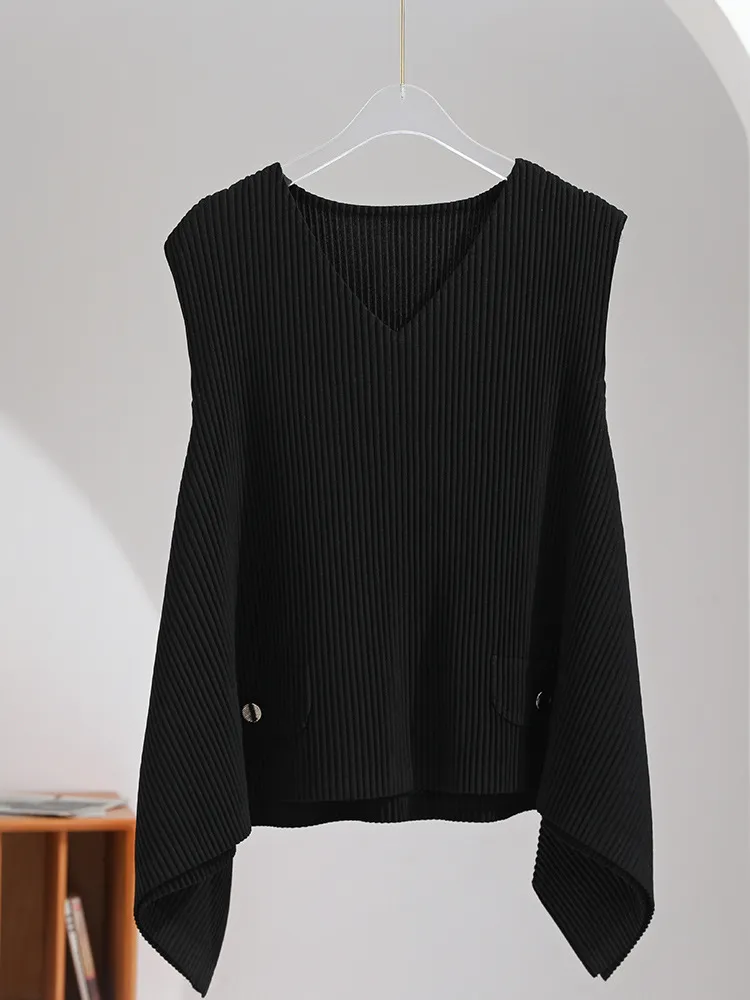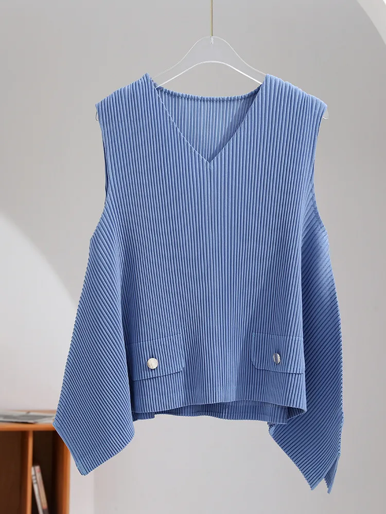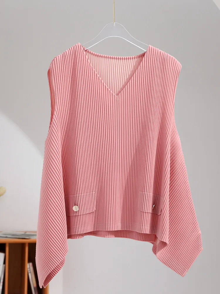 衣都精品- 2023新款V領套頭洋氣不規則大擺上衣