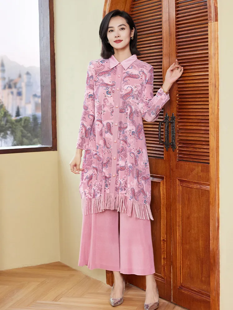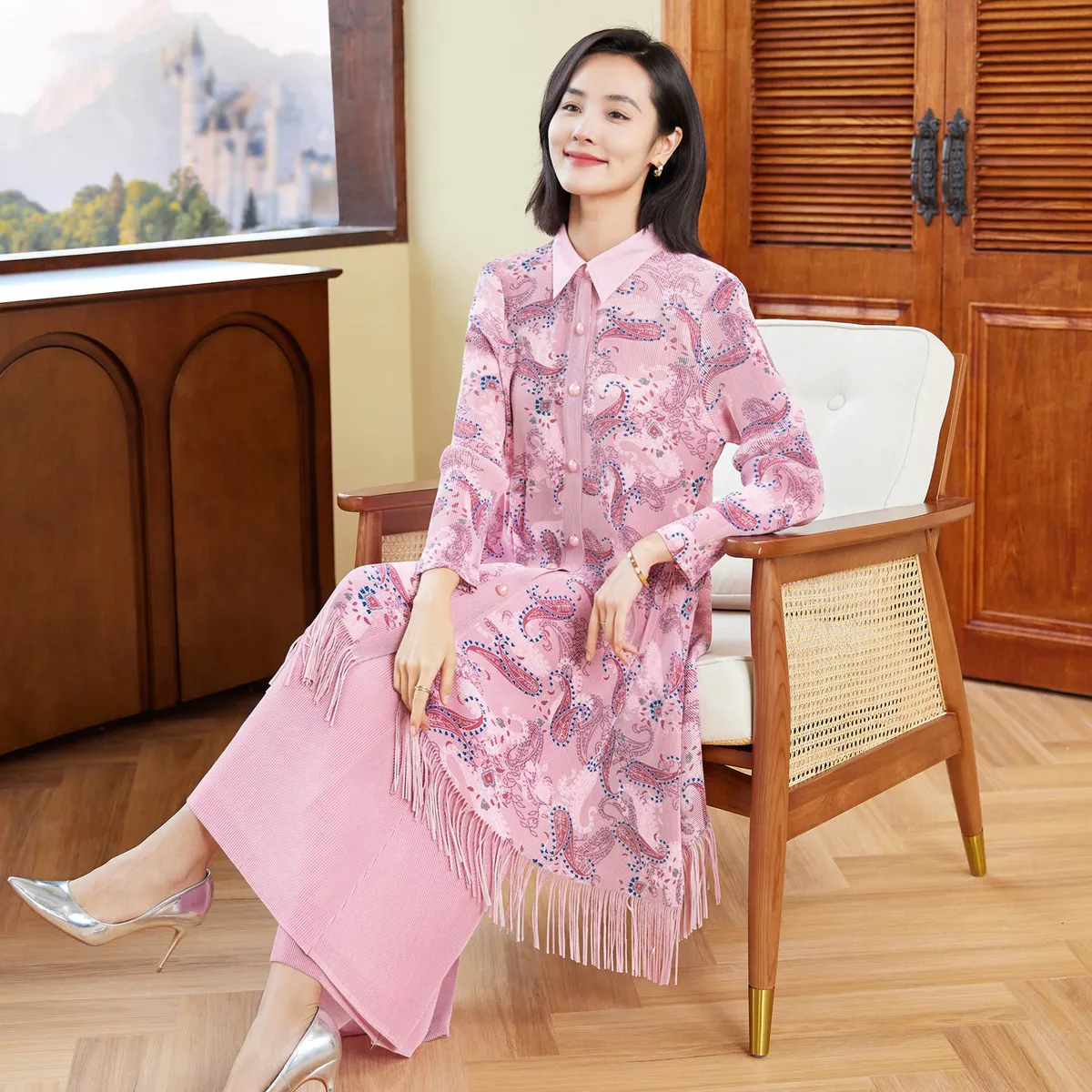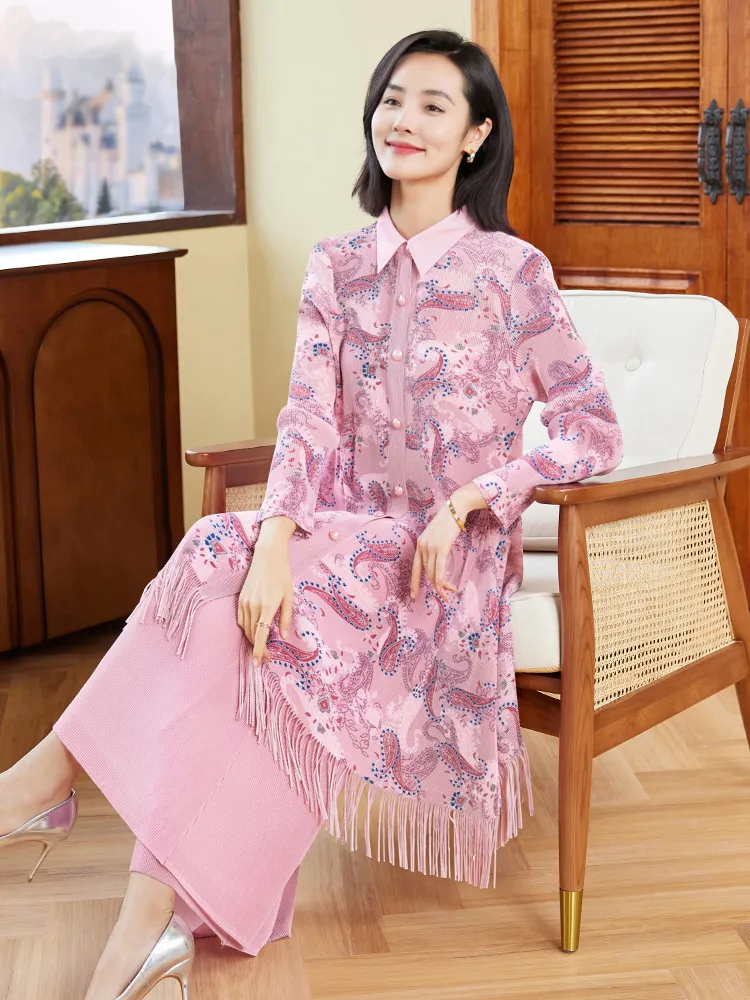 衣都精品- 2023新款復古減齡印花典雅大碼褶皺上衣