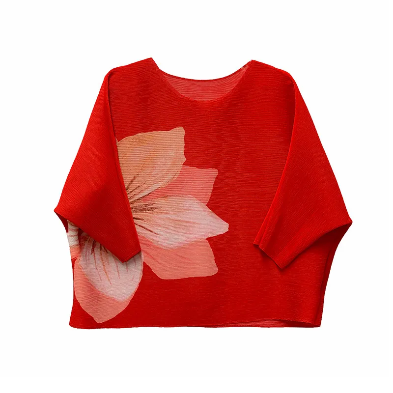 衣都精品- 2023新款寬鬆洋氣大碼遮肚短版褶皺上衣