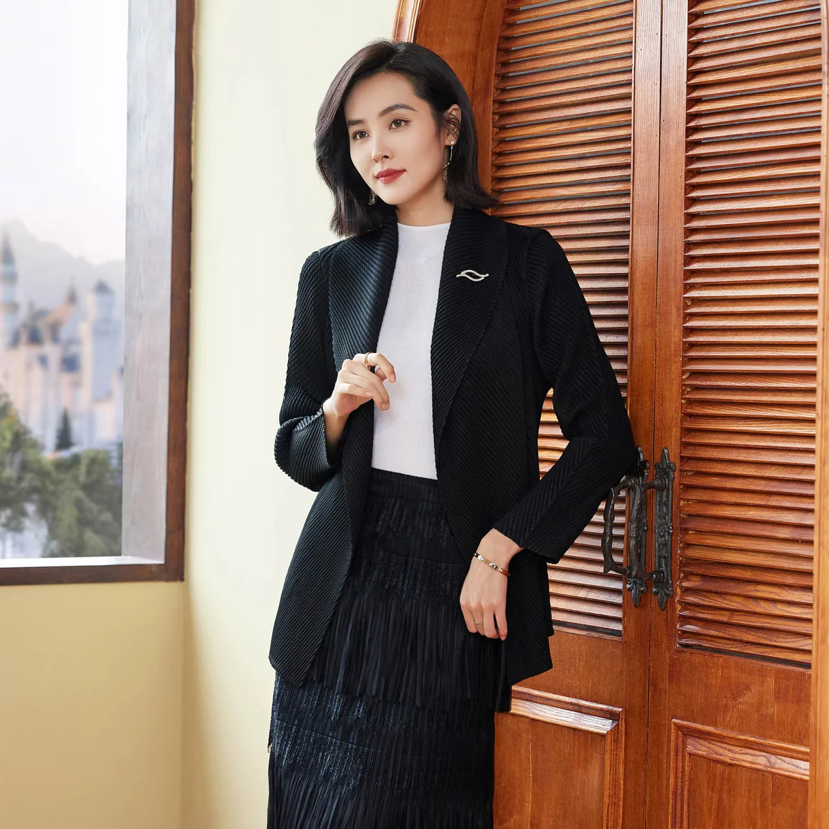 衣都精品- 2023新款時尚氣質百搭開衫顯瘦褶皺外套