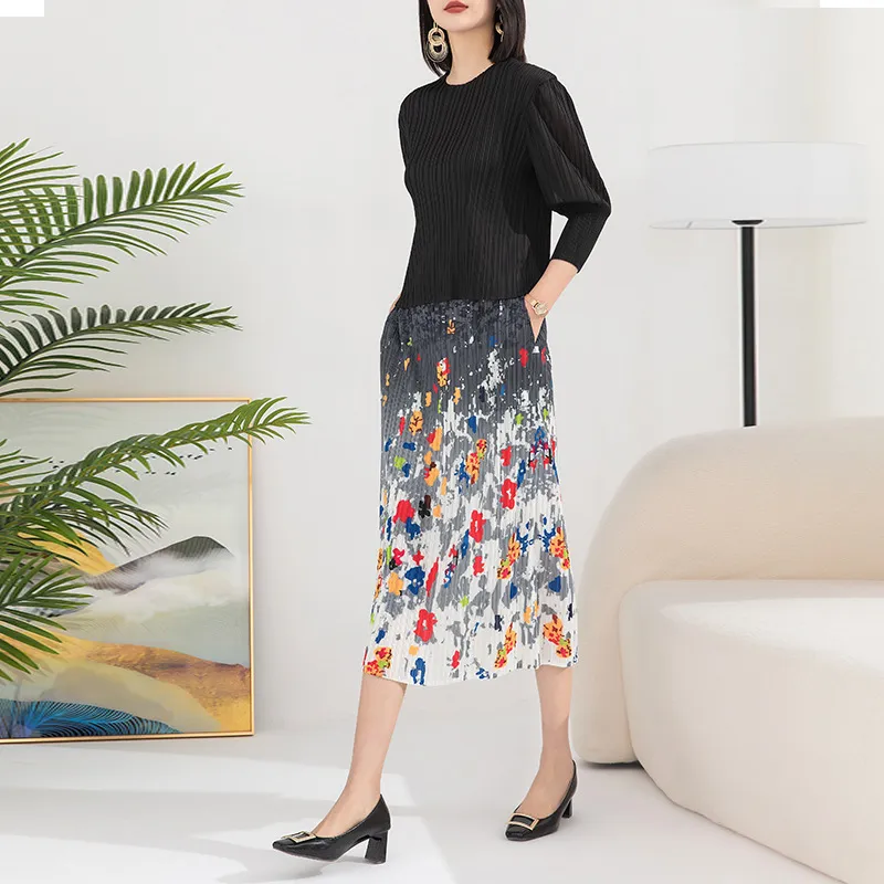 衣都精品- 2023新款時尚休閒小香風印染褶皺連衣裙
