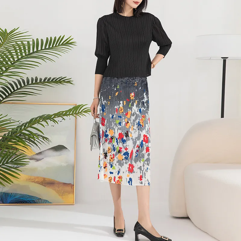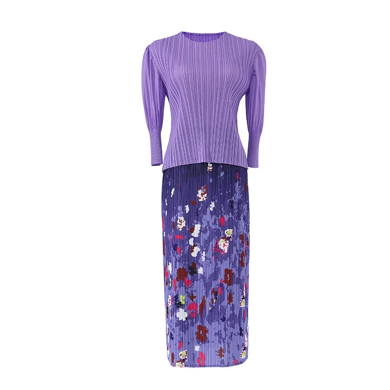 衣都精品- 2023新款時尚氣質圓領純色上衣+鬆緊腰半身裙休閒套裝