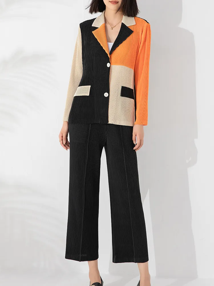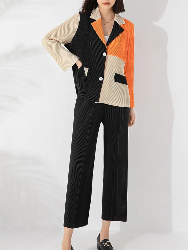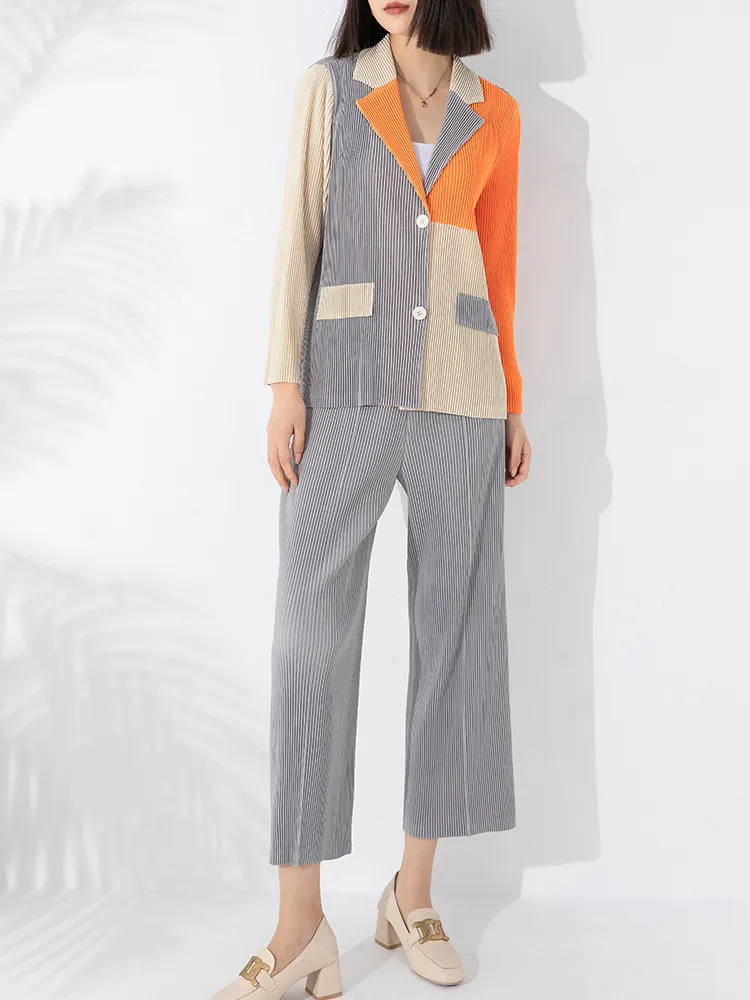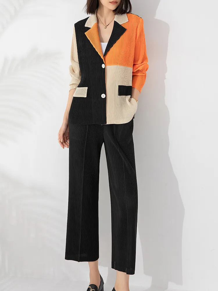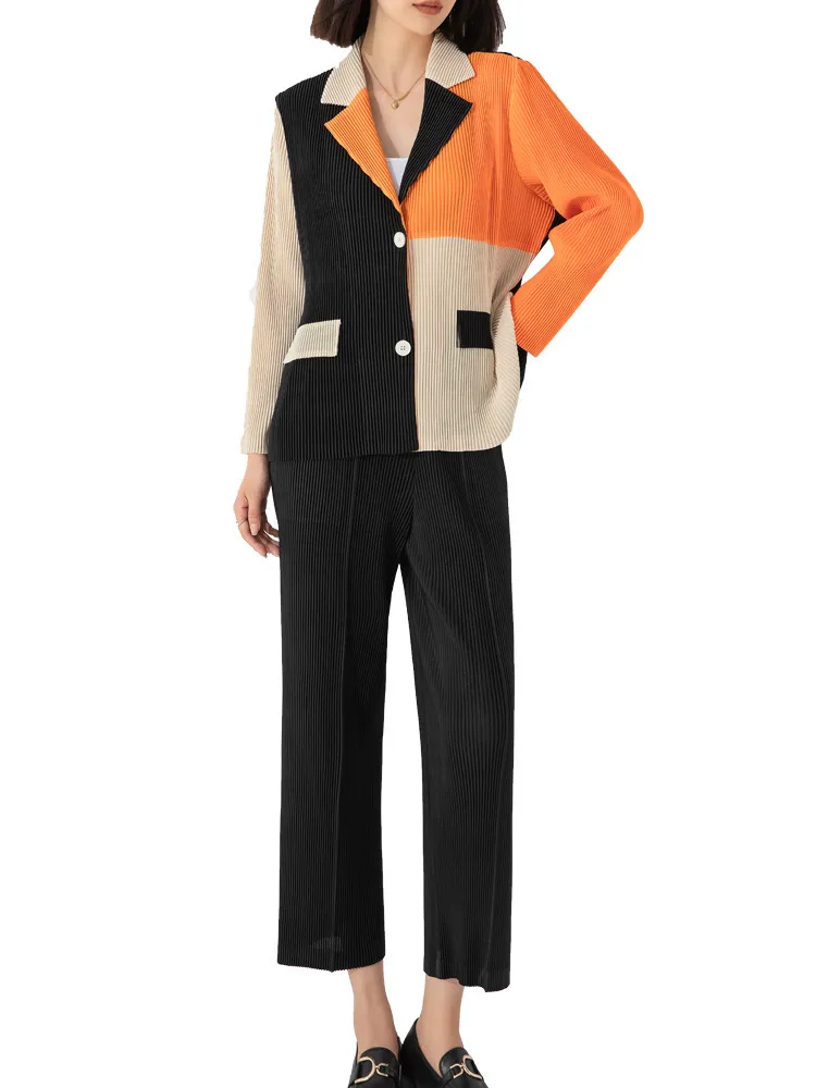 衣都精品- 2023新款時尚大碼撞色西裝外套+高腰直筒褲休閒套裝
