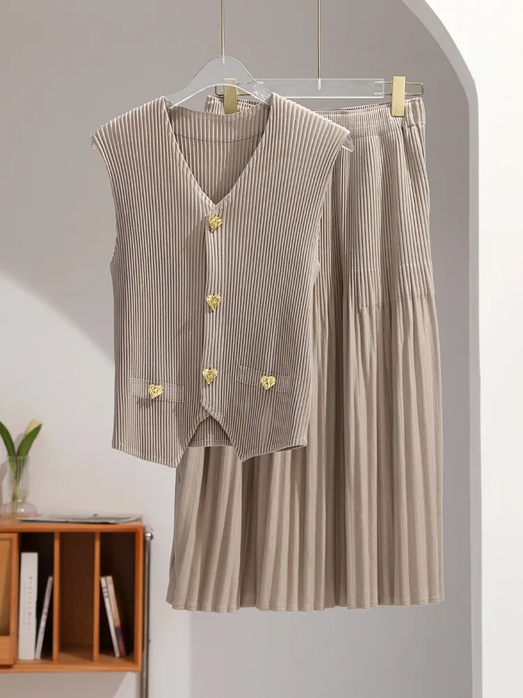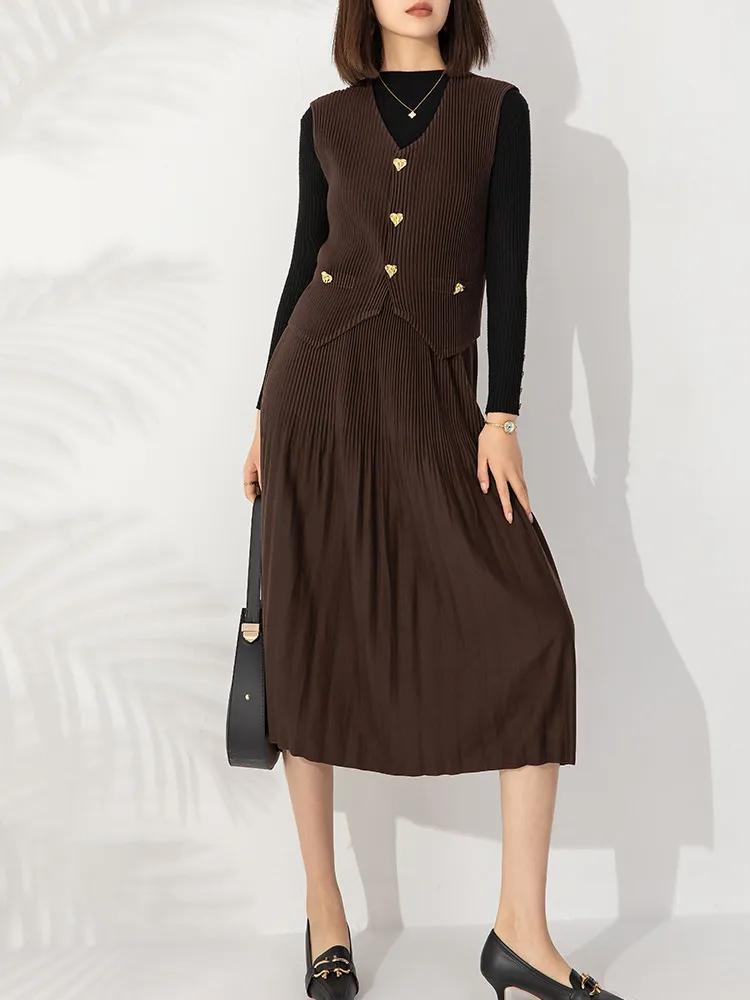衣都精品- 2023新款小香風高腰馬甲+垂感半身裙兩件式套裝