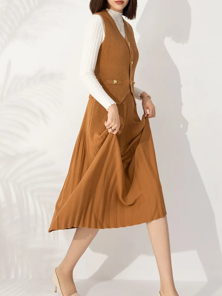 衣都精品- 2023新款小香風時尚休閒百搭褶皺連身裙