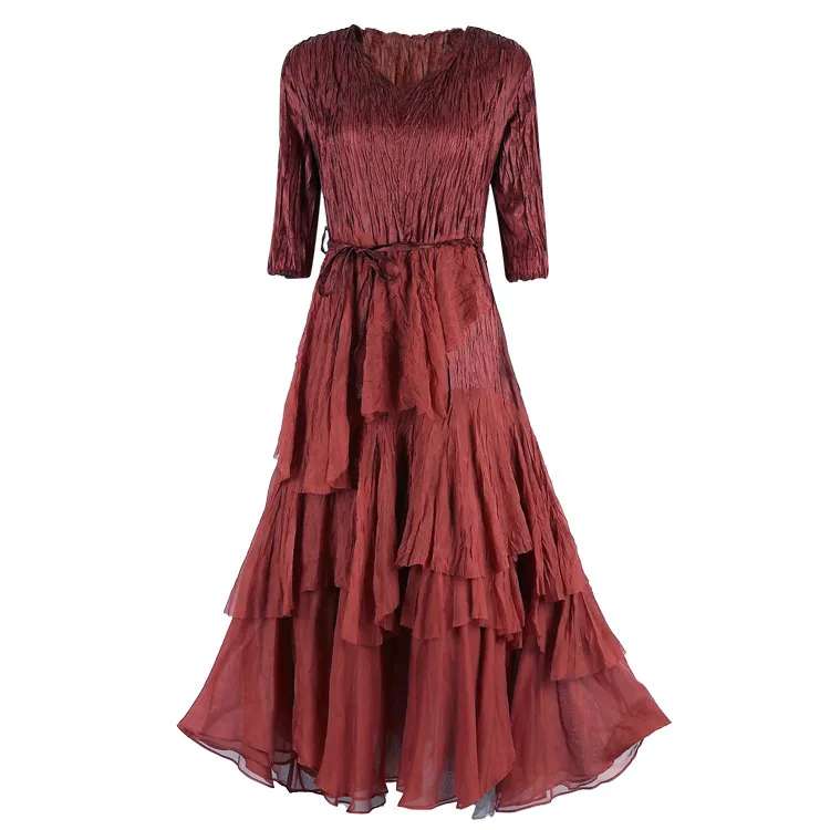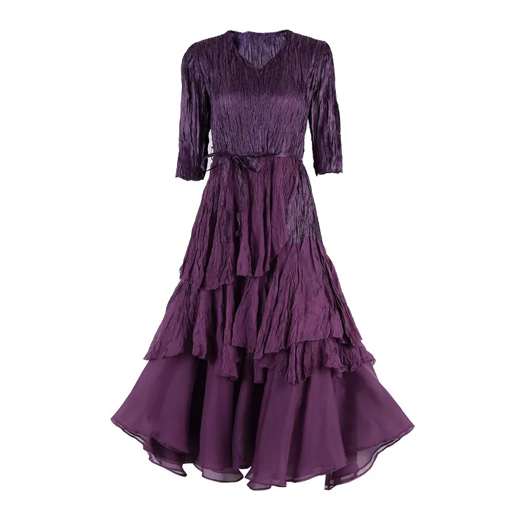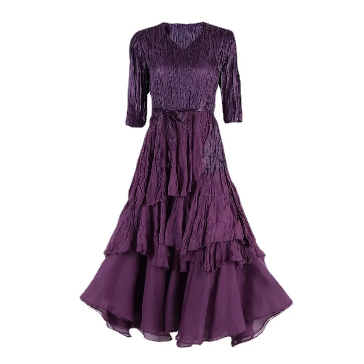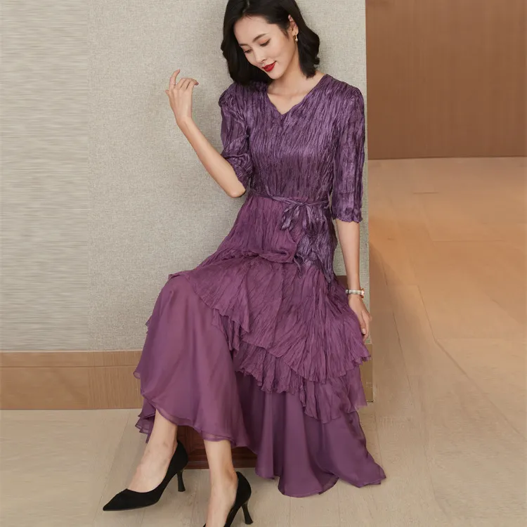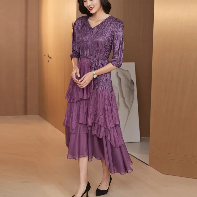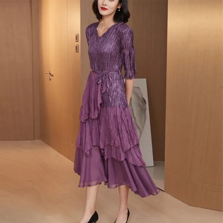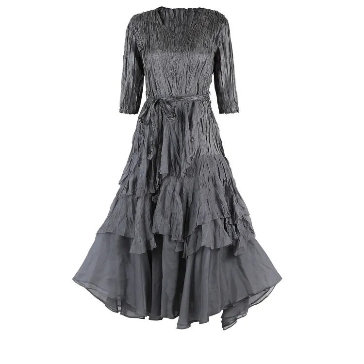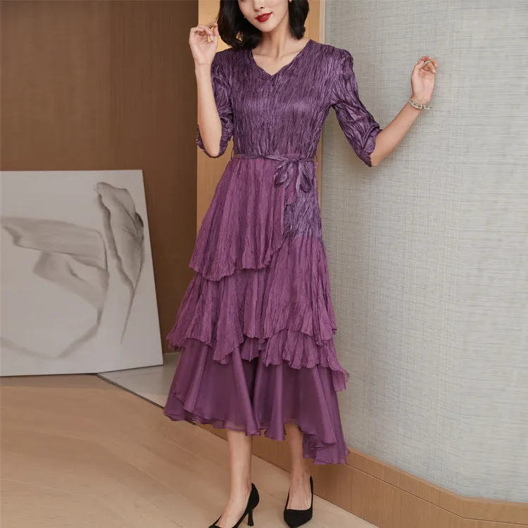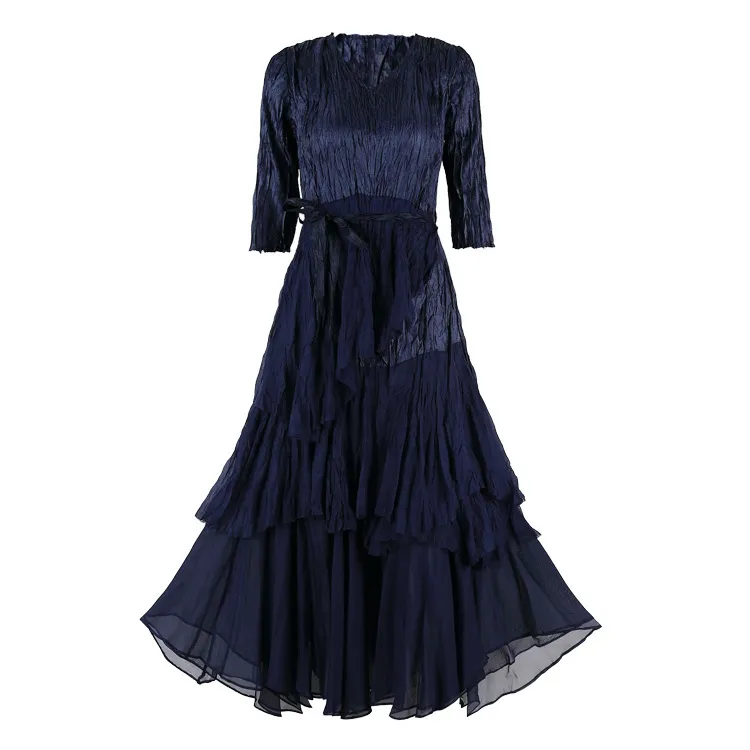 衣都精品- 2023新款修身顯瘦重工壓花不規則連衣裙