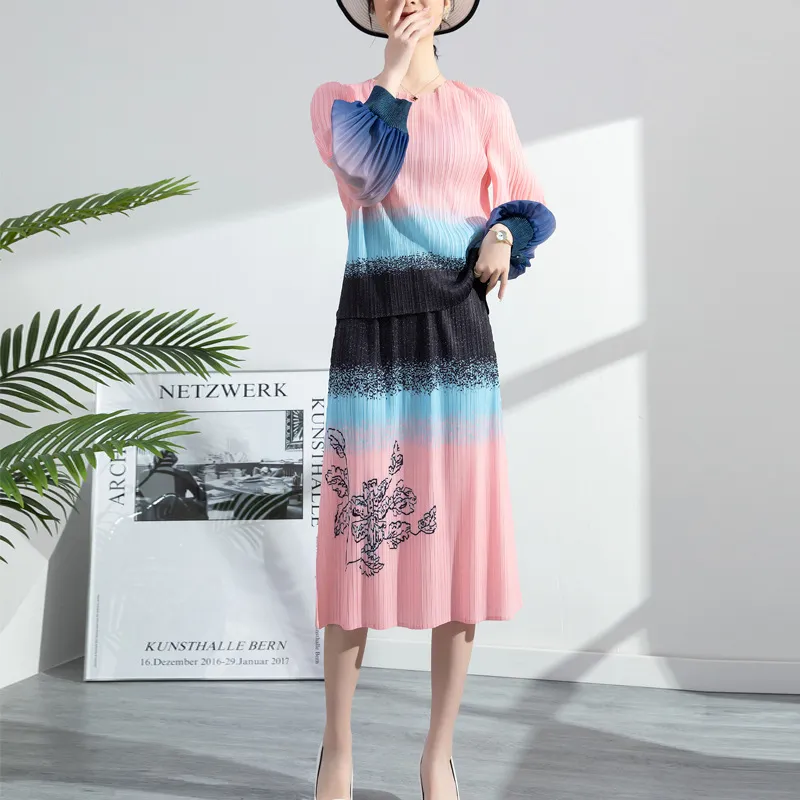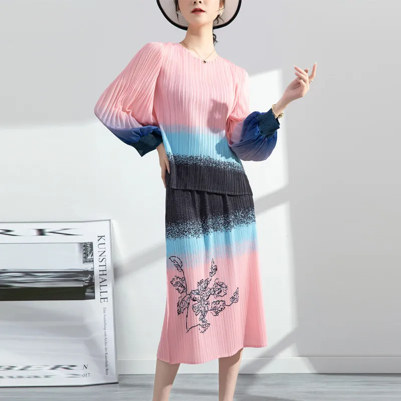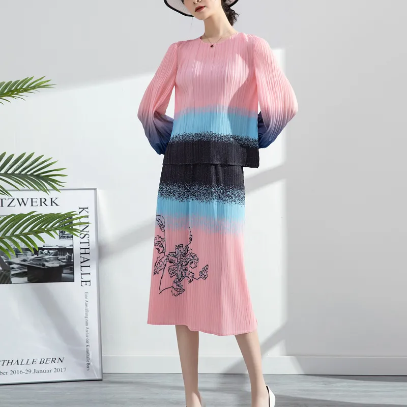 衣都精品- 2023新款時尚顯瘦遮肚洋氣印花上衣+半身裙兩件式套裝