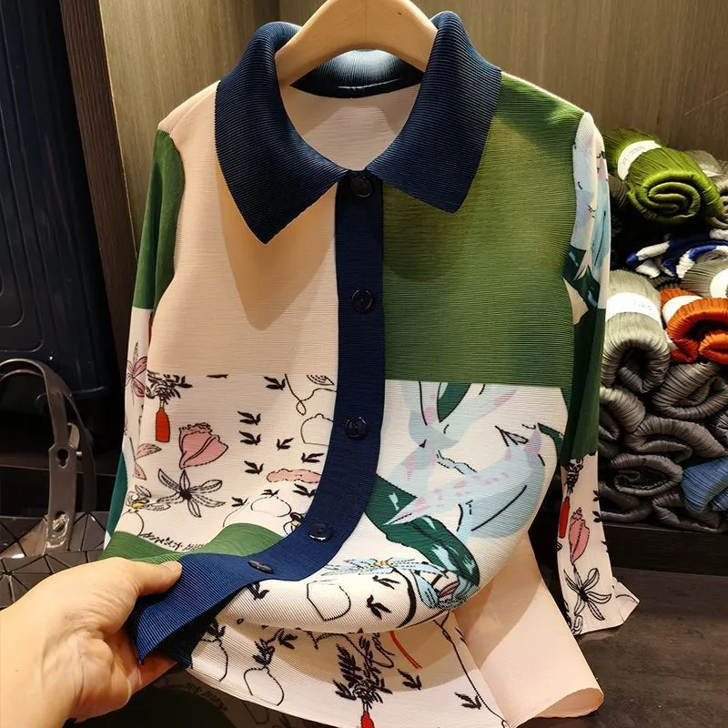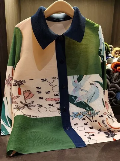 衣都精品- 2023新款寬鬆大碼翻領印花排扣開襟上衣