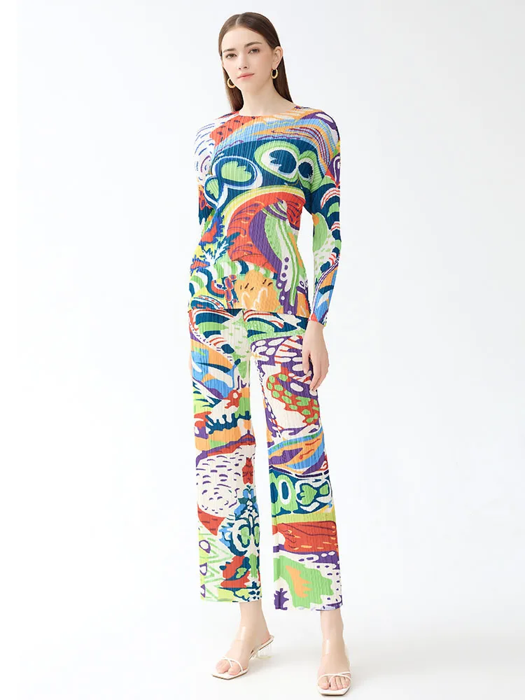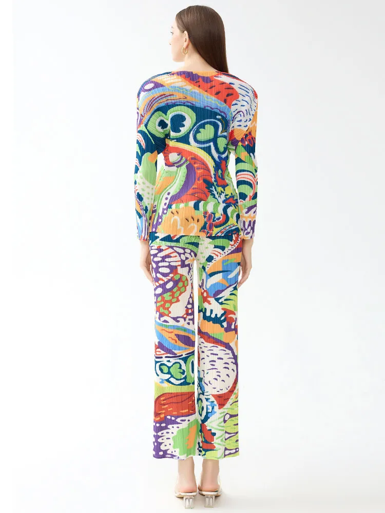 衣都精品- 2023新款時尚褶皺彩繪小香風彩色褲子