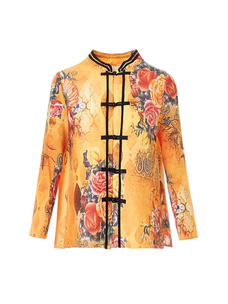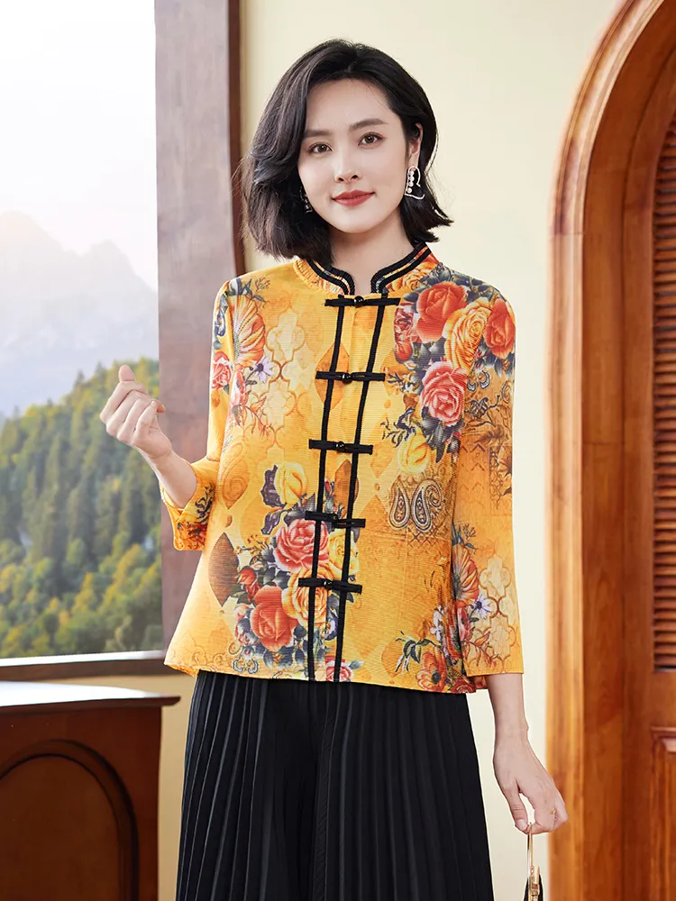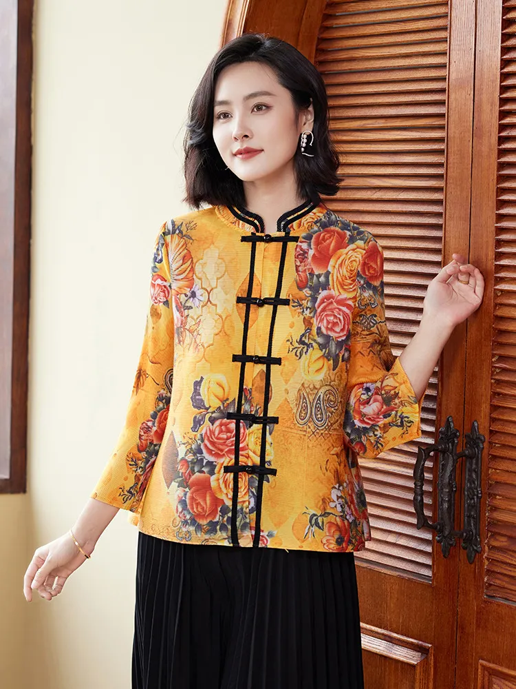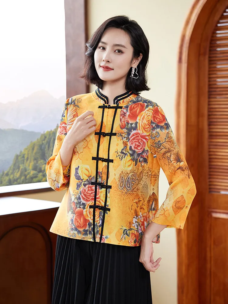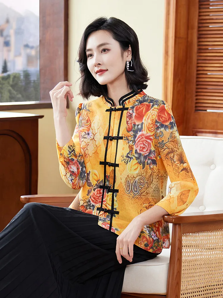 衣都精品- 2023新款中國風復古印花減齡褶皺上衣
