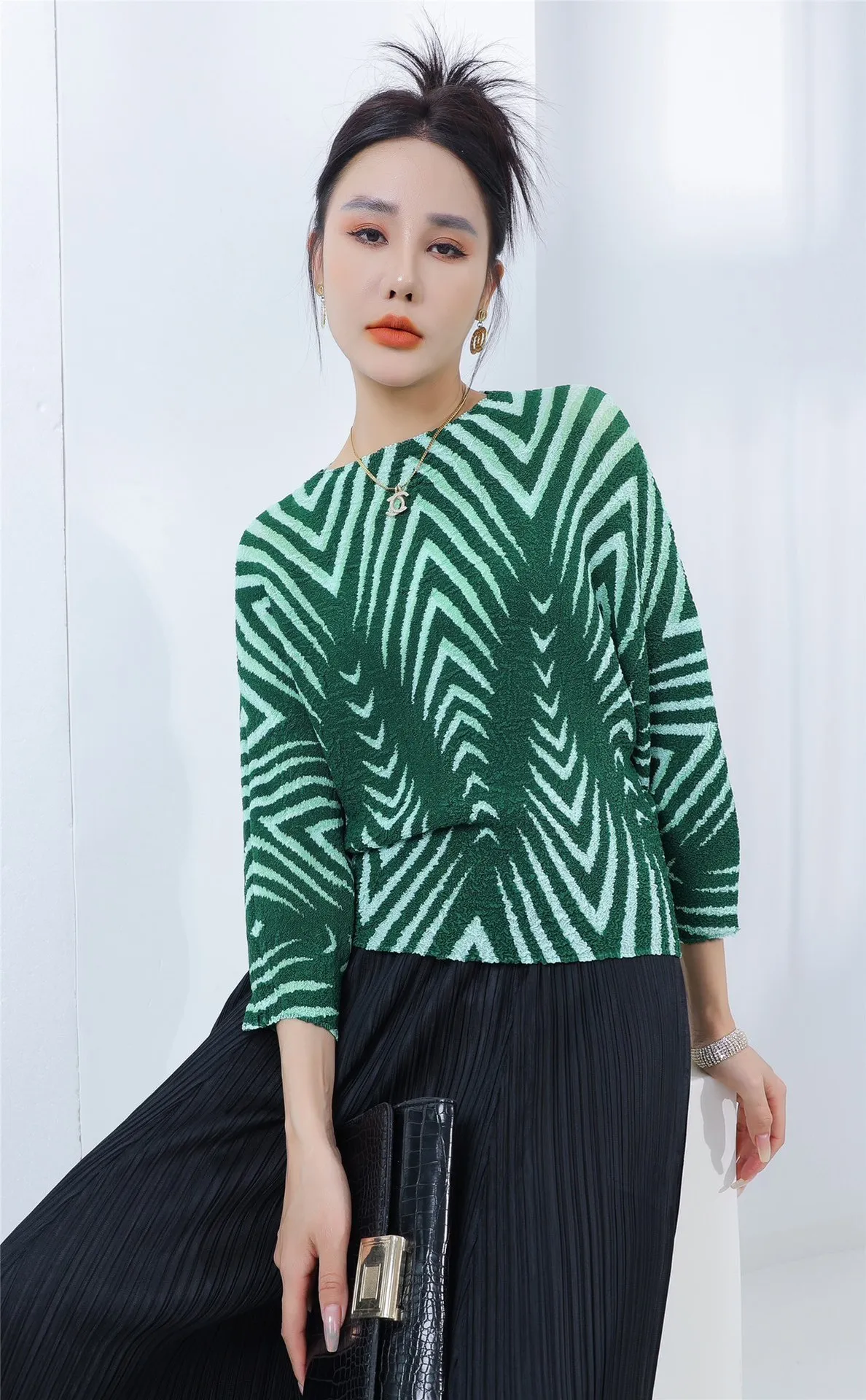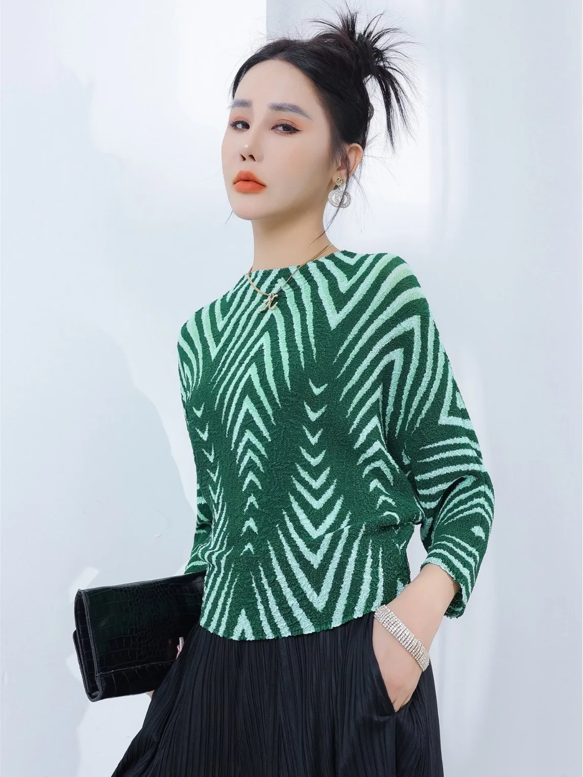 衣都精品- 2023新款韓版修身優雅條紋休閒褶皺上衣