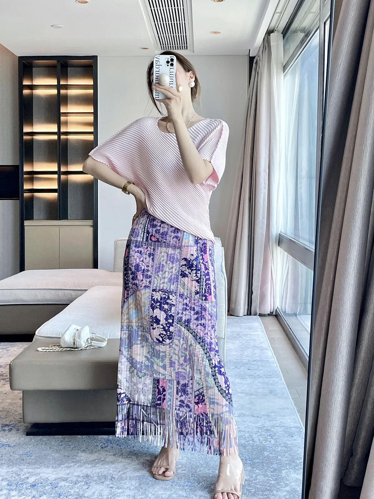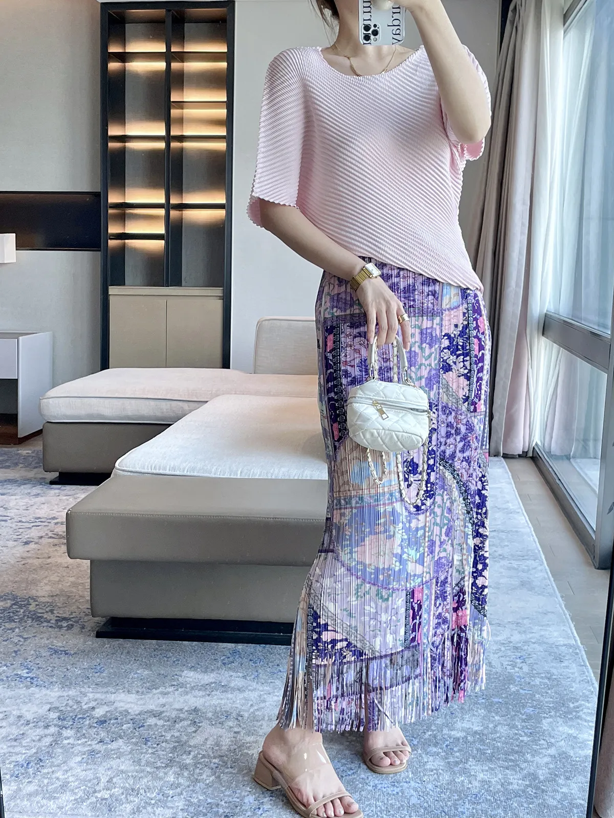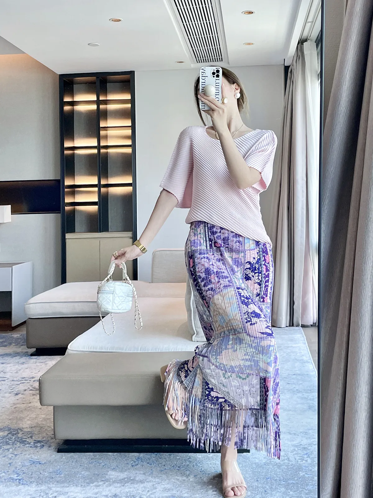 衣都精品- 2023新款高腰顯瘦時尚流蘇褶皺半身裙
