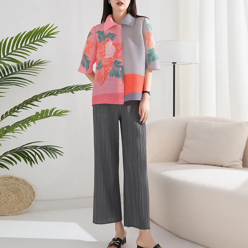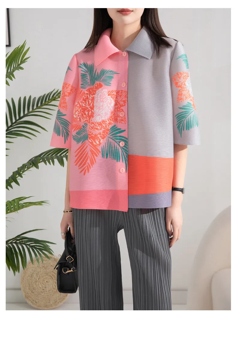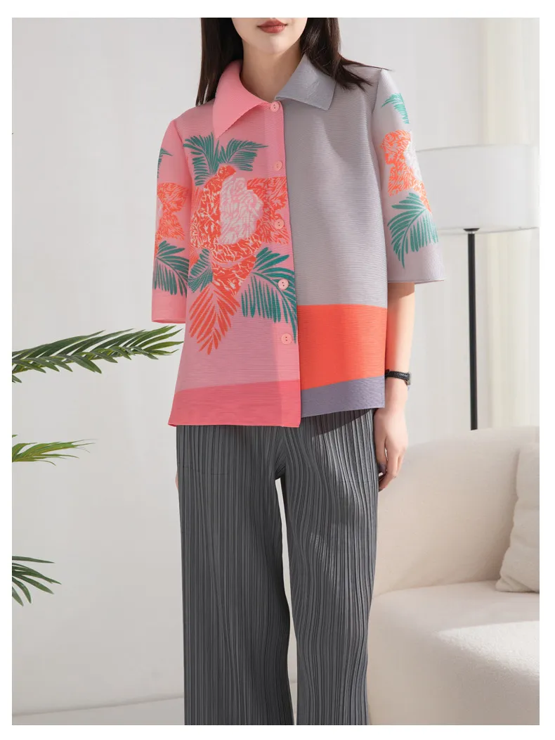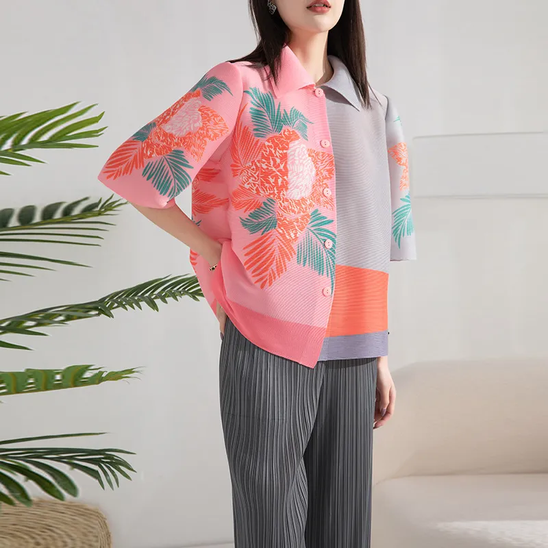衣都精品- 2023新款時尚氣質印花寬鬆大碼扣環褶皺外套