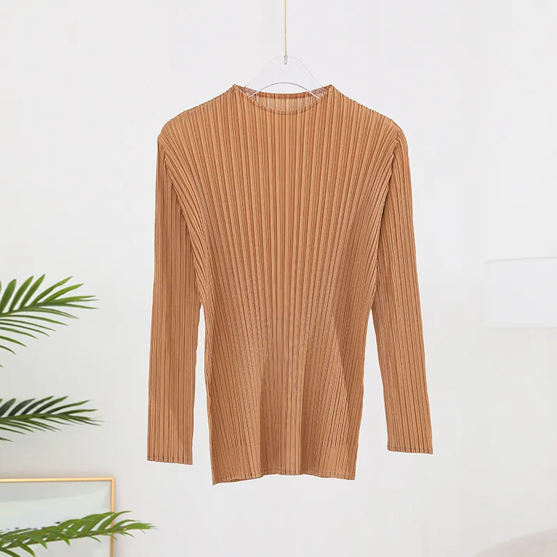 衣都精品- 2023新款半高領純色套頭寬鬆顯瘦褶皺上衣