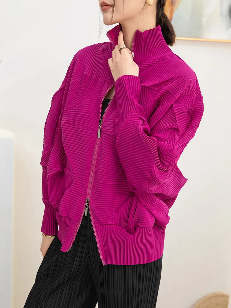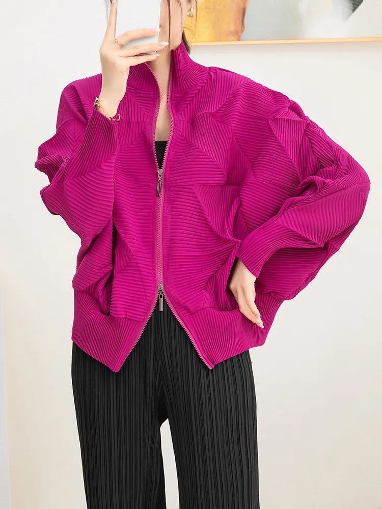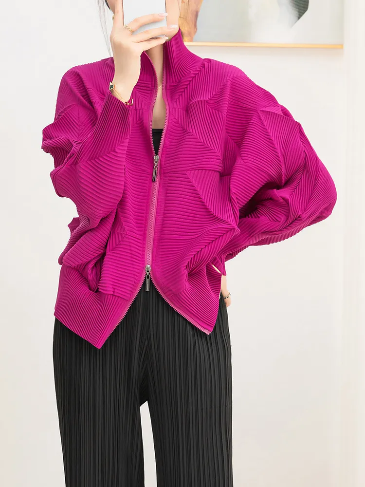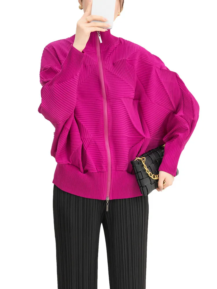 衣都精品- 2023新款手工花苞蝙蝠袖拉鍊褶皺外套