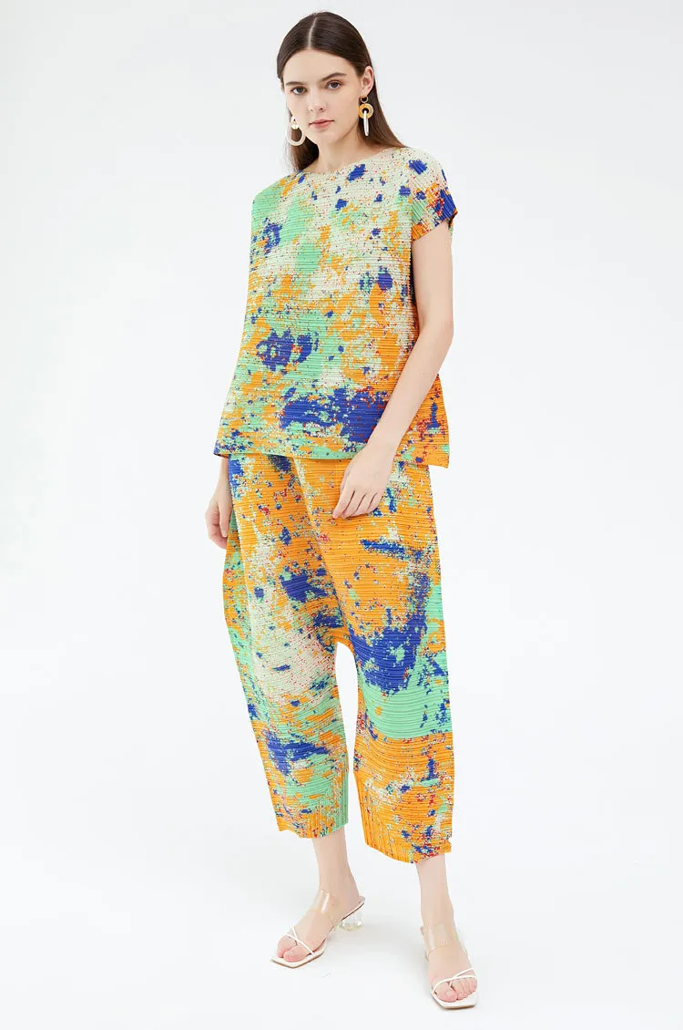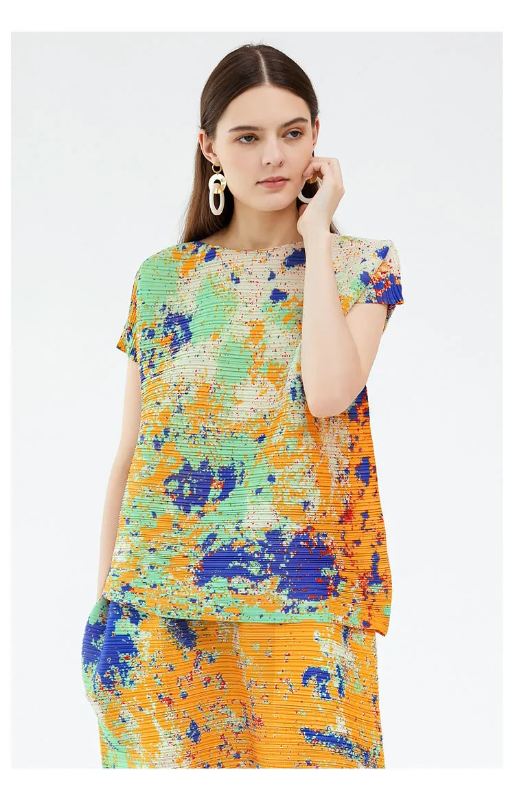 衣都精品- 2023新款韓版印花時尚寬鬆褶皺上衣