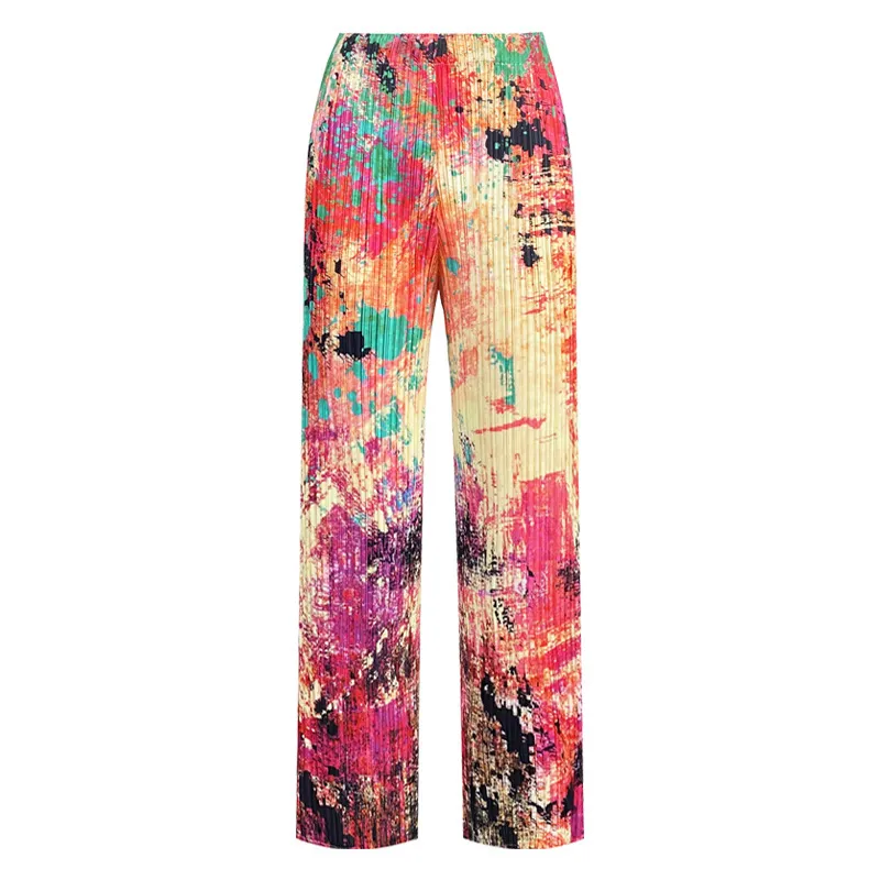 衣都精品- 2023新款時尚修身手繪印花褶皺休閒褲