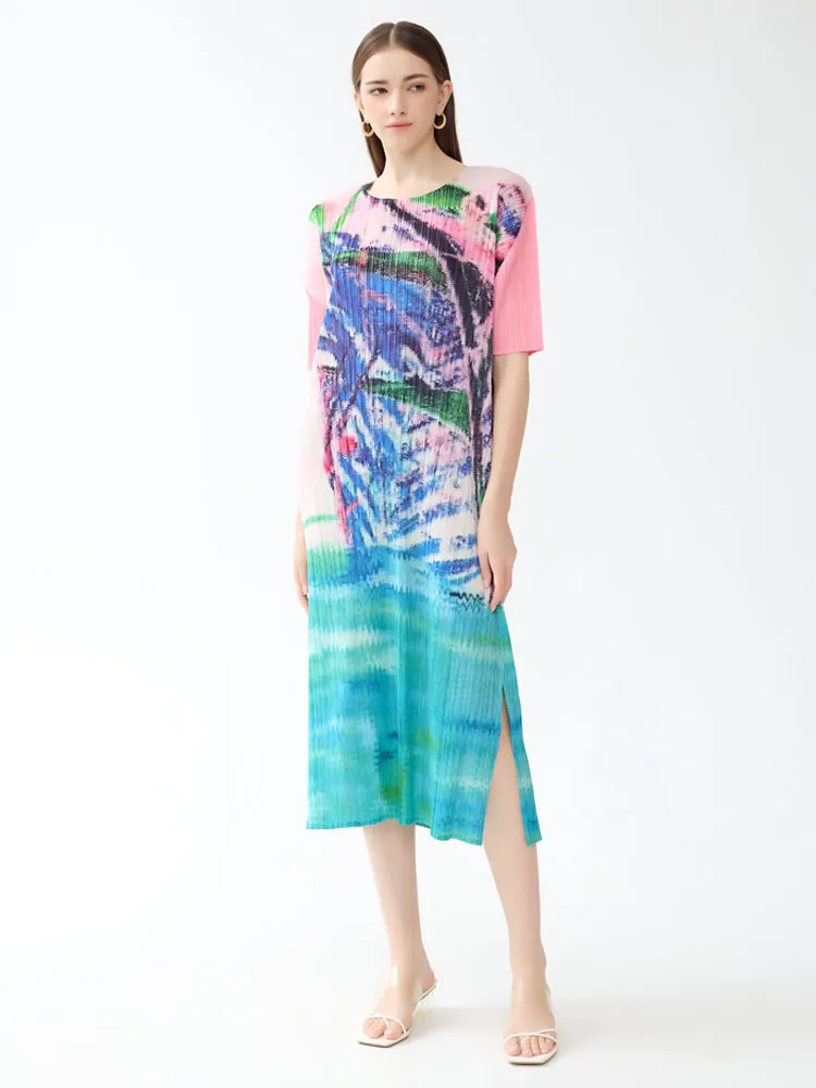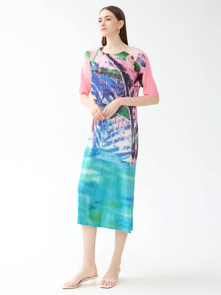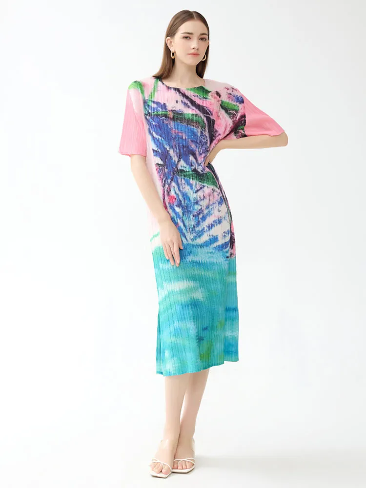衣都精品- 2023新款繪畫設計感氣質印花褶皺半身裙