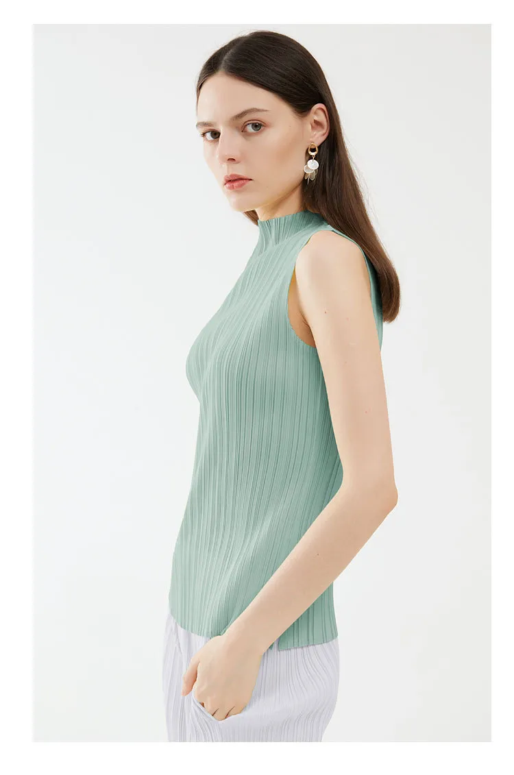 衣都精品- 2023新款氣質顯瘦無袖高領背心褶皺上衣