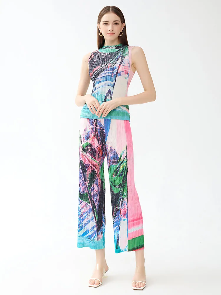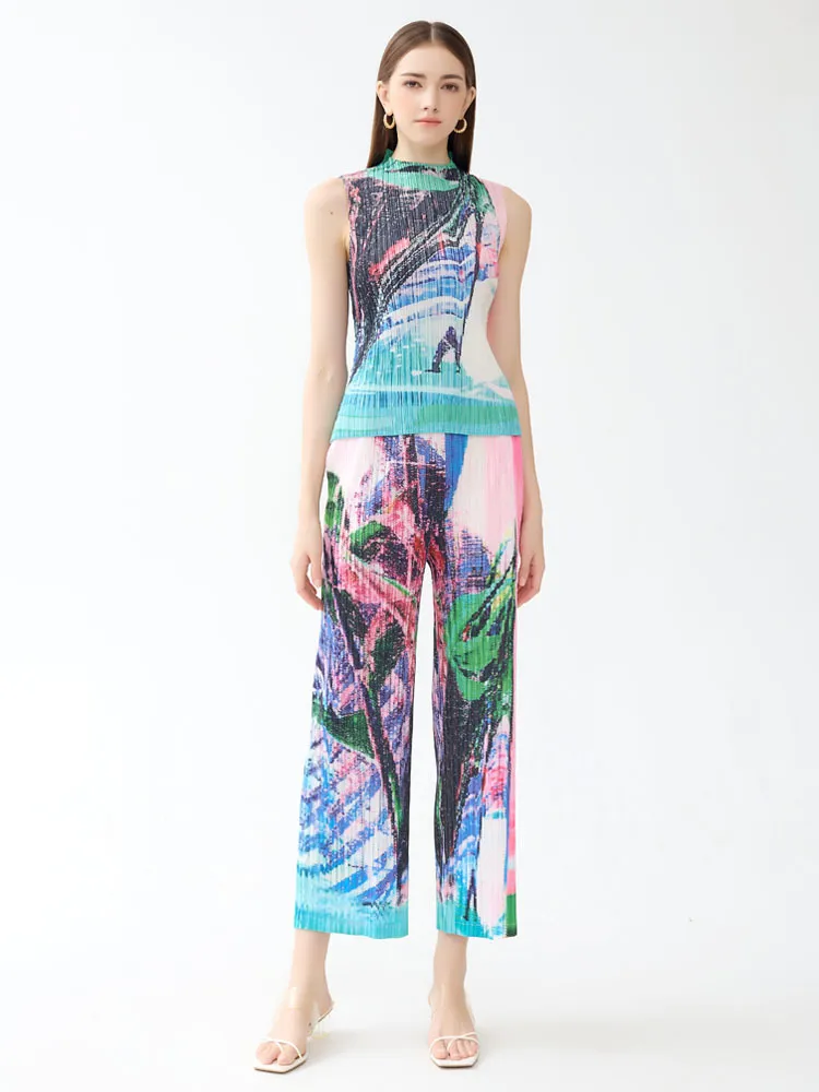 衣都精品- 2023新款時尚修身顯瘦印染無袖褶皺上衣