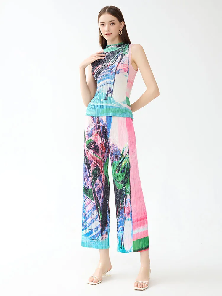 衣都精品- 2023新款時尚修身顯瘦印染無袖褶皺上衣