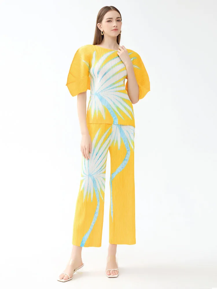 衣都精品- 2023新款時尚修身顯瘦印染褶皺直筒褲