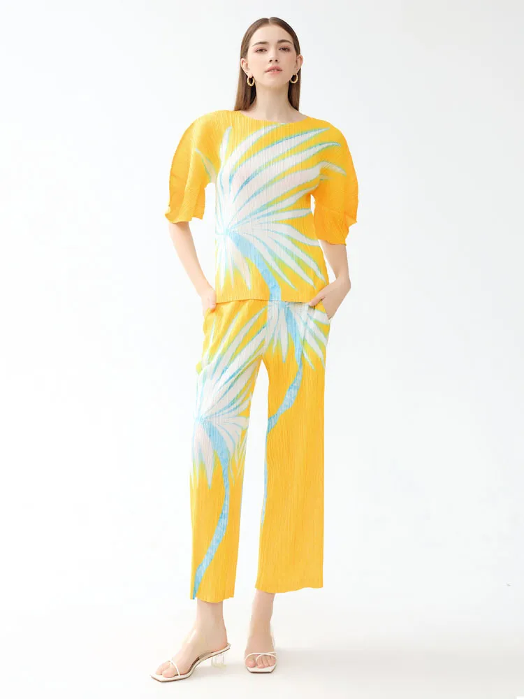 衣都精品- 2023新款時尚修身顯瘦印染褶皺直筒褲