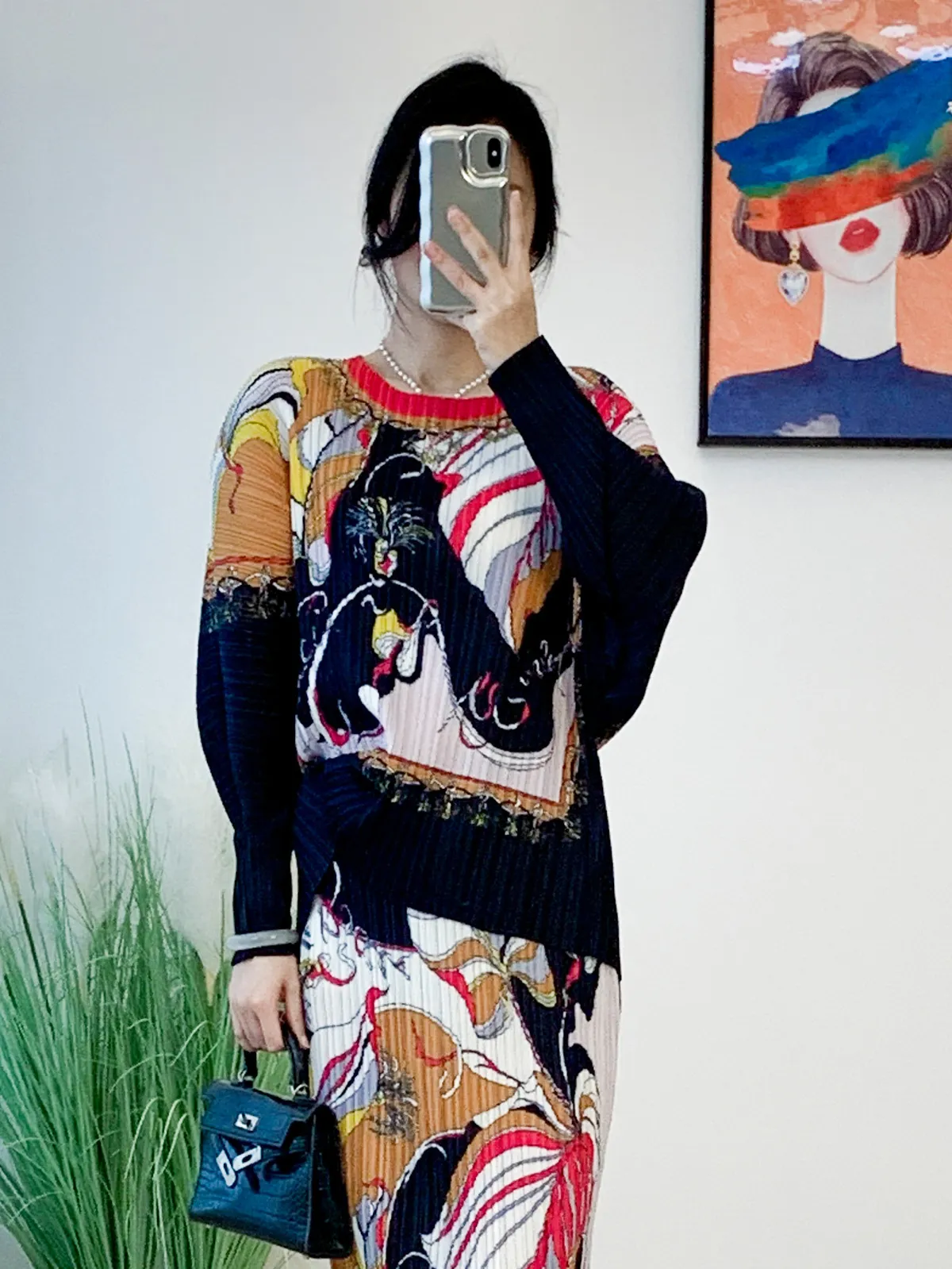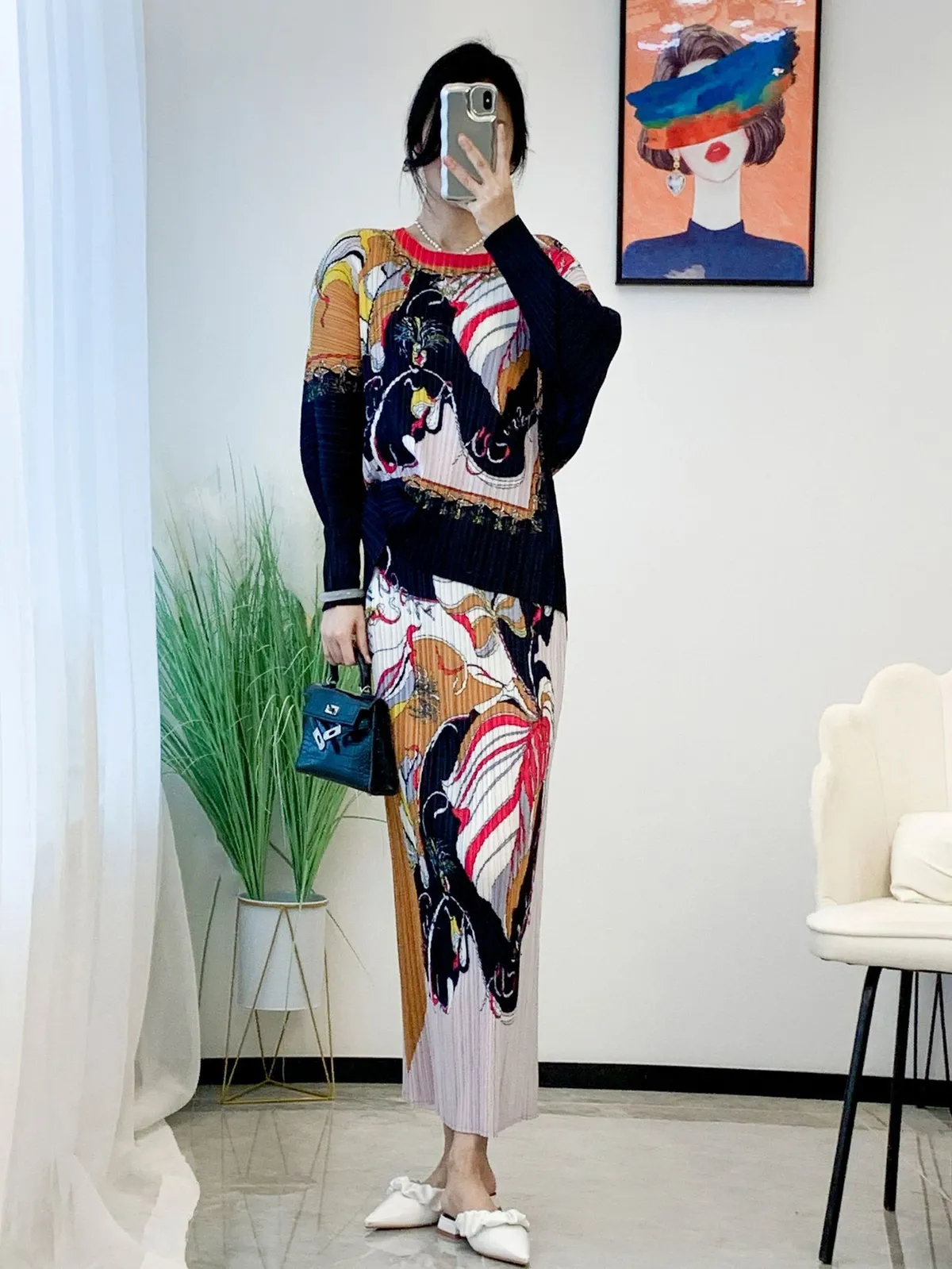 衣都精品- 2023新款高級印花寬鬆時尚褶皺半身裙
