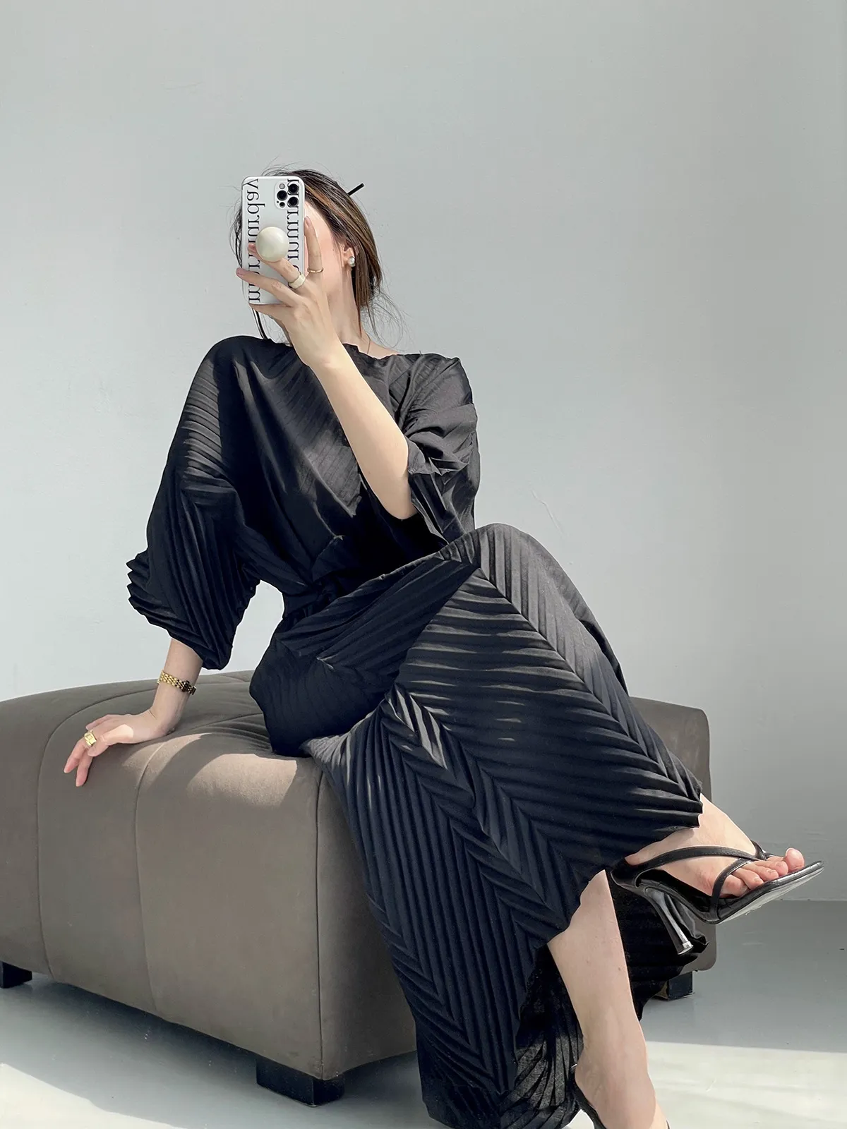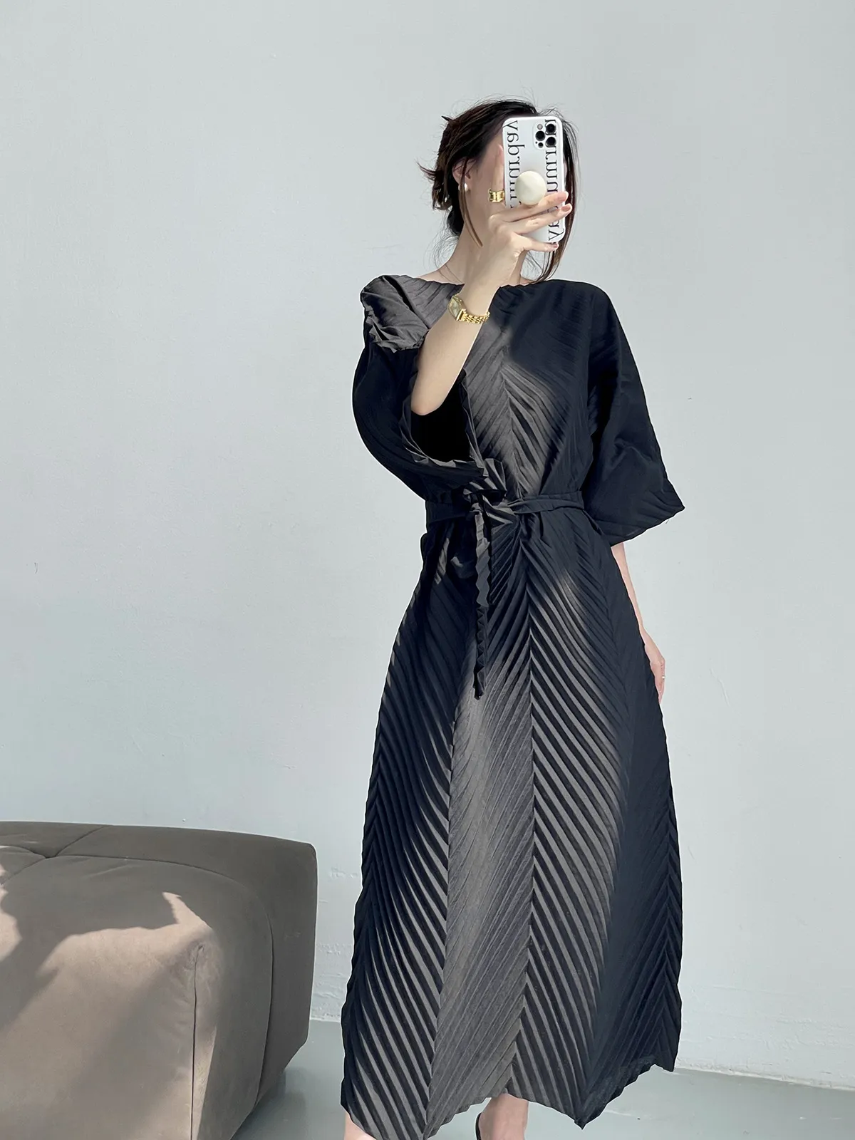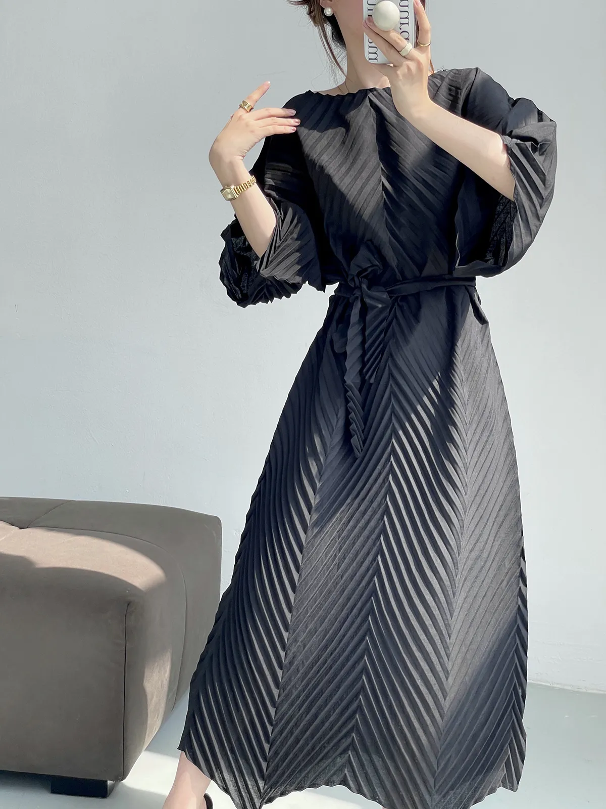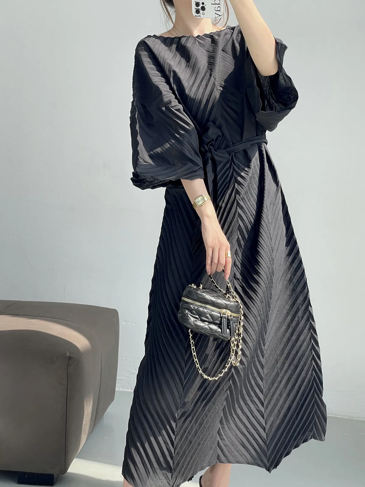 衣都精品- 2023新款法式復古手褶寬鬆慵懶風褶皺連衣裙