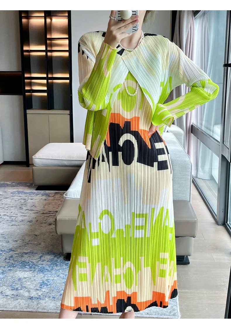衣都精品- 2023新款拼色時尚休閒氣質優雅上衣+半身裙兩件式褶皺套裝