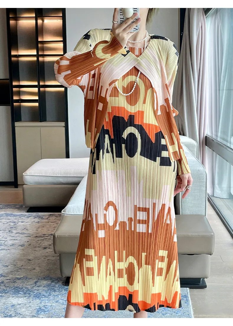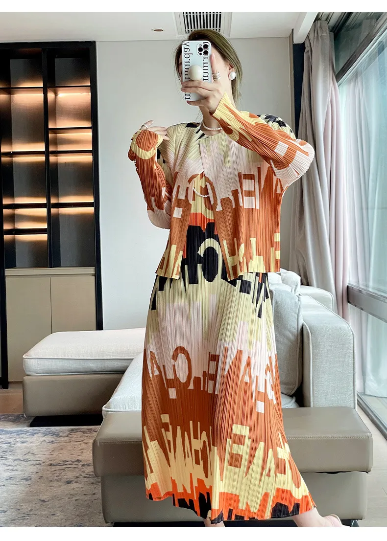 衣都精品- 2023新款拼色時尚休閒氣質優雅上衣+半身裙兩件式褶皺套裝