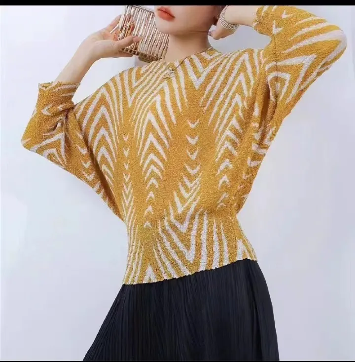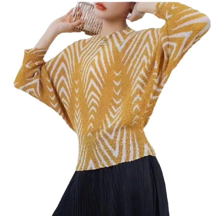 衣都精品- 2023新款高端氣質印花寬鬆親膚蝙蝠袖褶皺上衣
