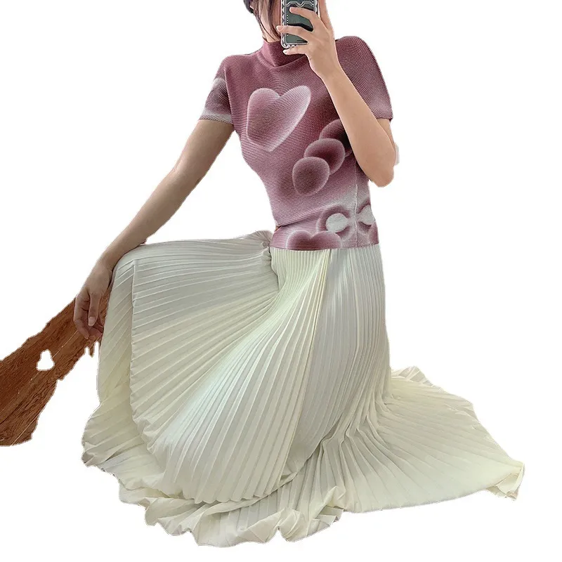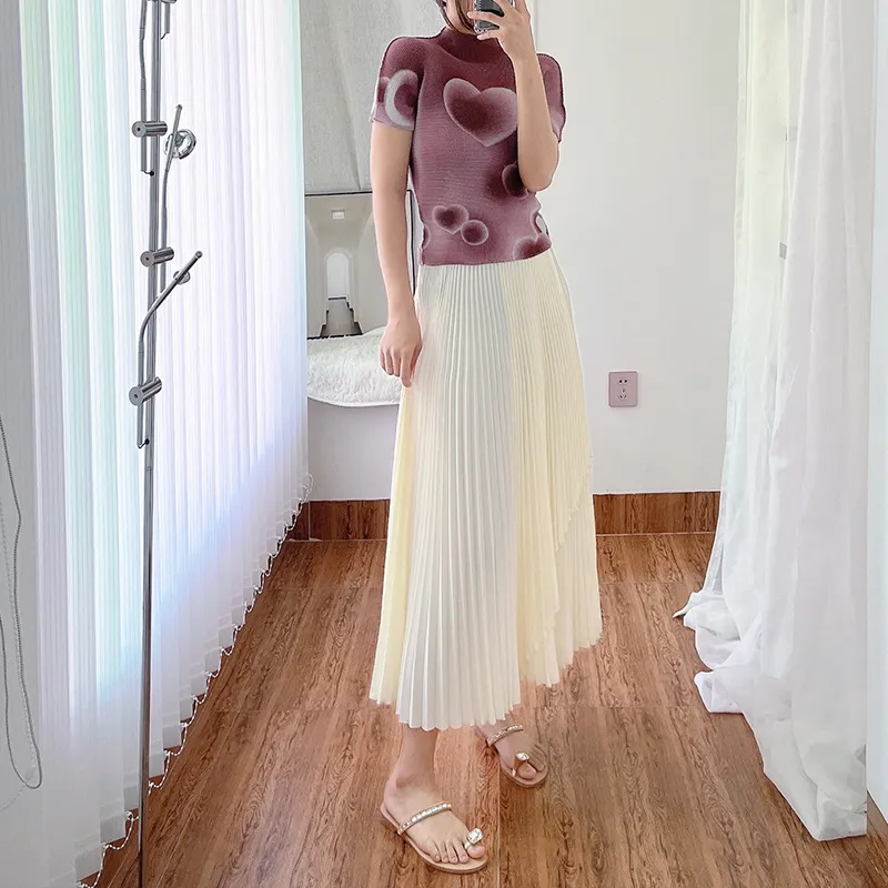 衣都精品- 2023新款撞色不規則小眾百褶褶皺半身裙